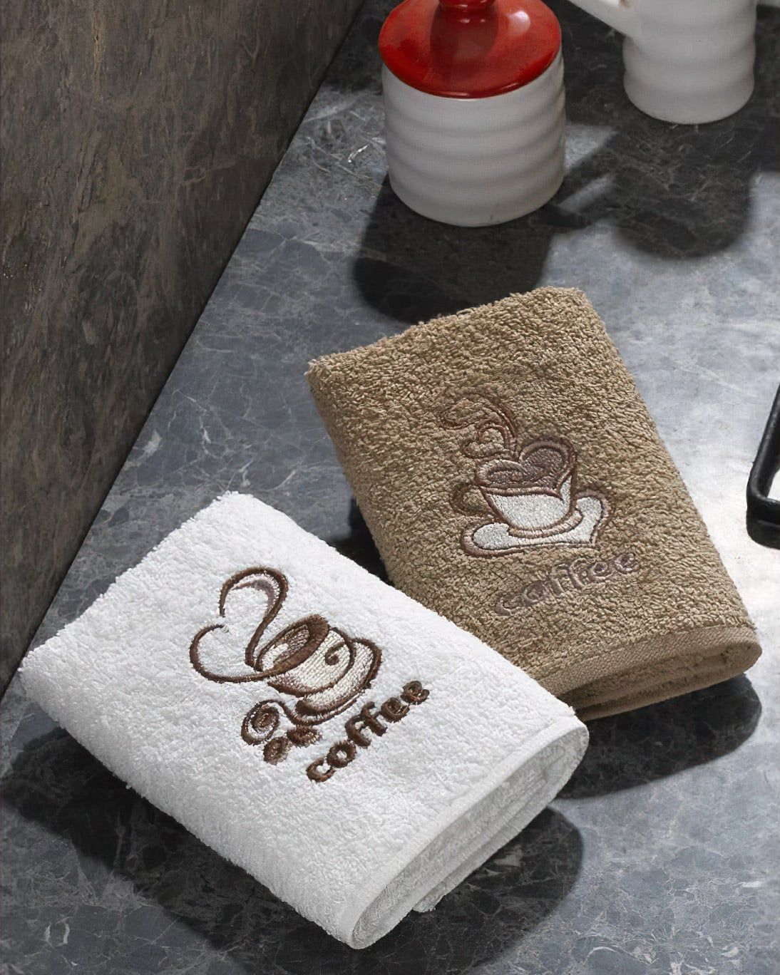 Dárkový set froté ručníků (3x 30x50cm) s vyšívaným vzorem kávy na bílém, hnědém a béžovém pozadí. Ručníky jsou vyrobeny z vysoce kvalitní 100% bavlny s vysokou gramáží, díky čemuž jsou velmi hebké, savé a mají nadýchaný vzhled. Vyrobeny jsou v gramáži 400g/m2 vhodné k umyvadlu jak do koupelny, WC nebo také do kuchyně. Dodáváno v dárkovém, krabicovém balení.Froté ručníky a se stanou ozdobou každé koupelny. Ručníky jsou vyrobeny ze 100% bavlny s vysokou gramáží, díky čemuž jsou velice savé, hebké a příjemné na dotek. Udrží si vlastnosti a barevnou stálost i po mnoha vypráních. Osušky a ručníky doporučujeme prát na 40°C bez aviváže aby se dosáhlo stálé savosti. Žehlení max. 150°C.