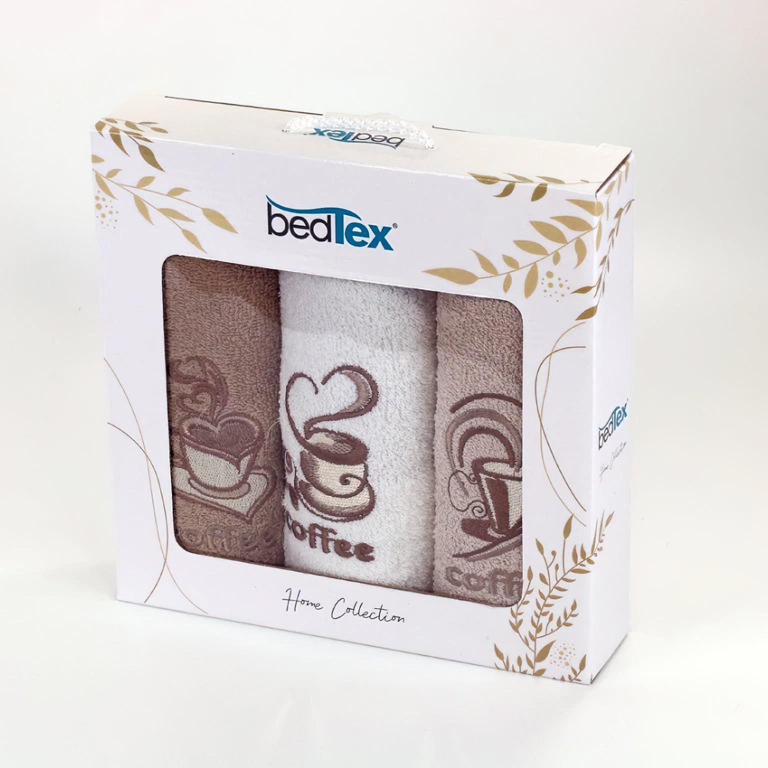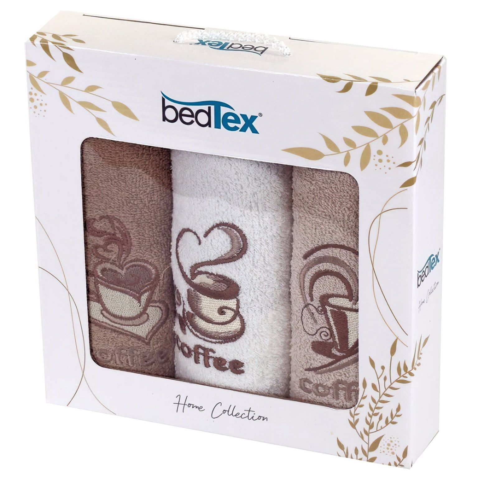 Dárkový set froté ručníků ČAS NA KÁVU, béžový s výšivkou, 30x50cm, 3ks