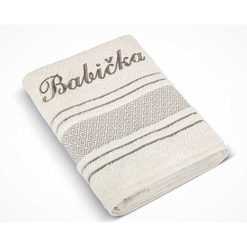 Froté ručník S VÝŠIVKOU BABIČKA, krémový, 50x100cm