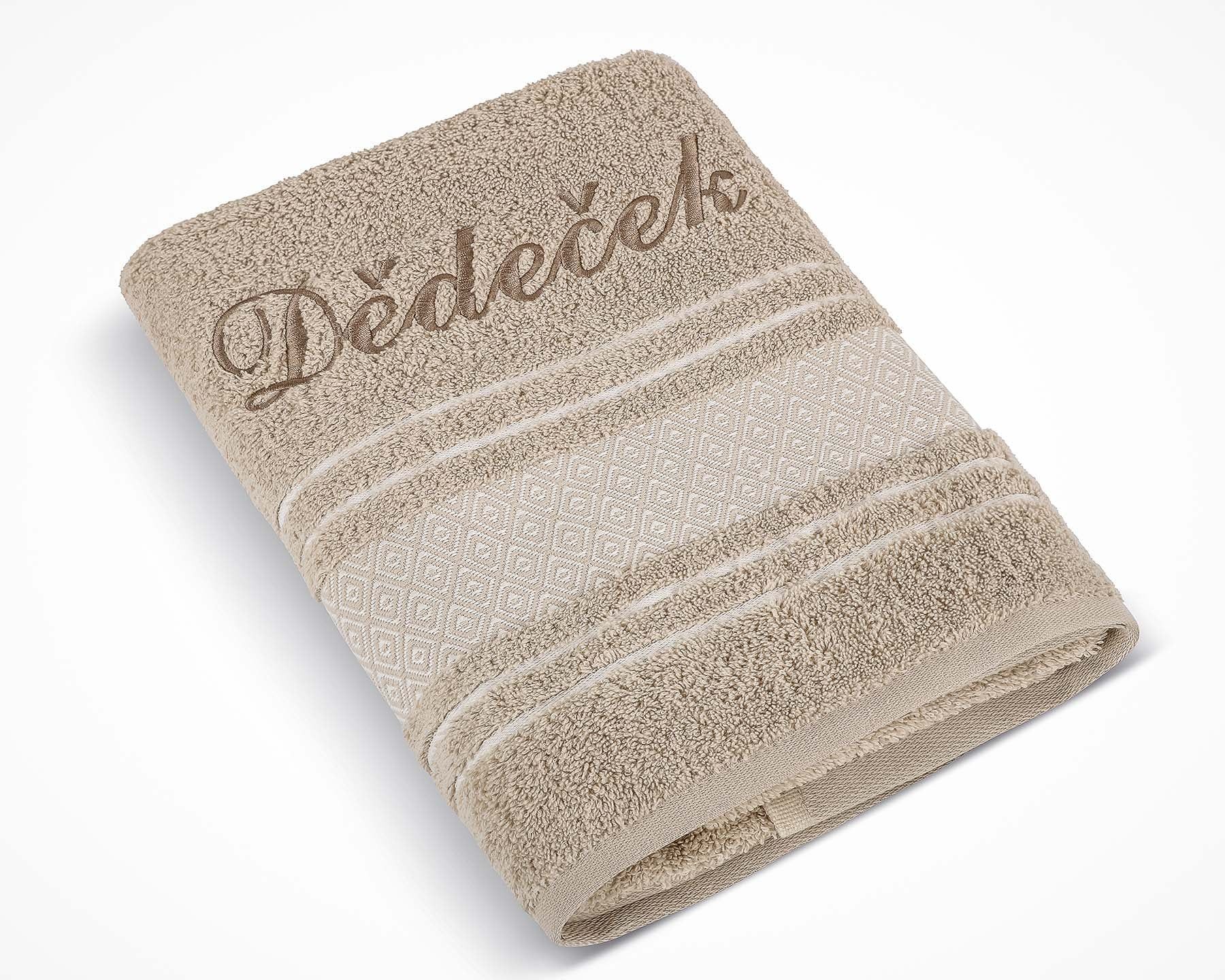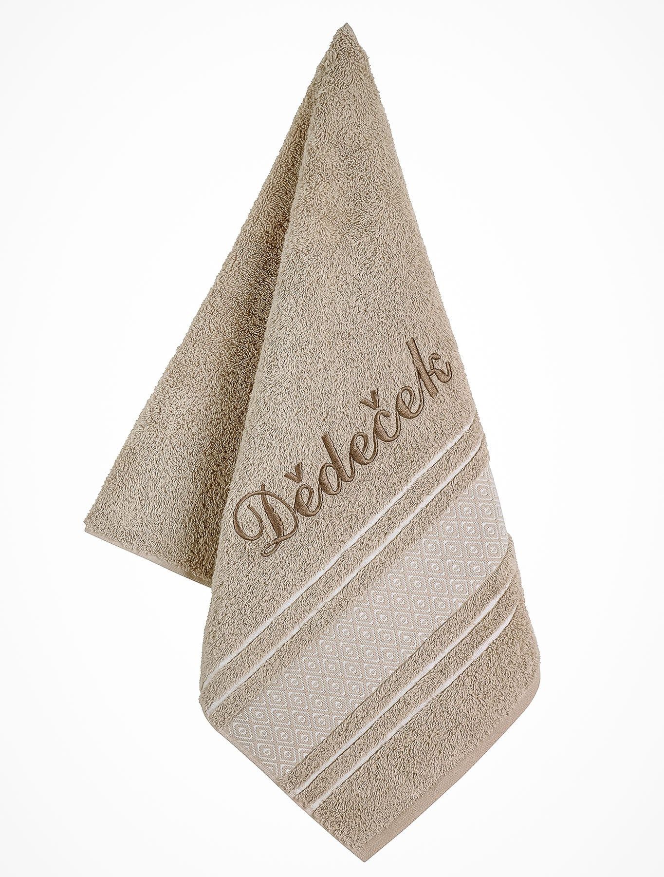 Froté ručník S VÝŠIVKOU DĚDEČEK, béžový, 50x100cm
