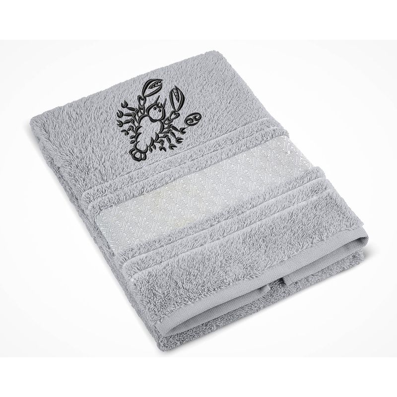 Froté ručník S VÝŠIVKOU ZNAMENÍ ZVĚROKRUH RAK, šedý, 50x100cm