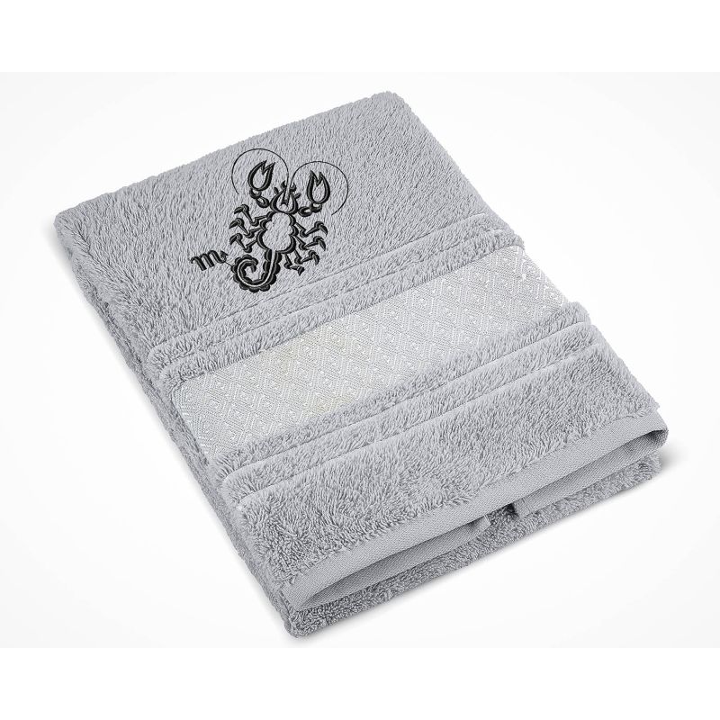 Froté ručník S VÝŠIVKOU ZNAMENÍ ZVĚROKRUH ŠTÍR, šedý, 50x100cm