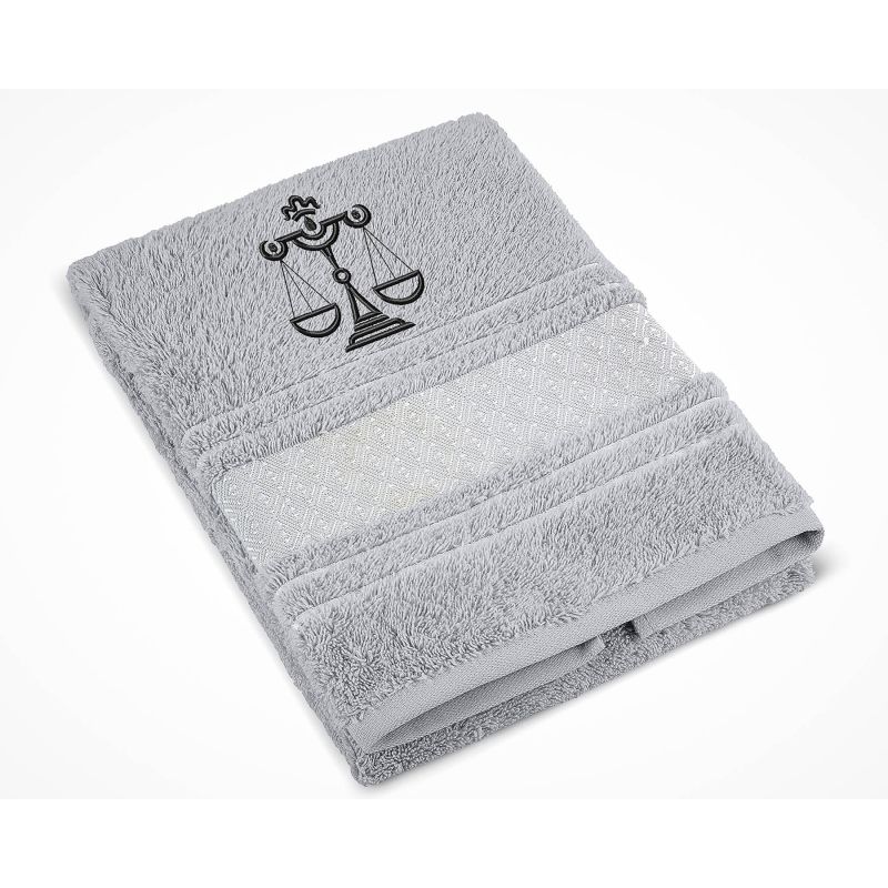 Froté ručník S VÝŠIVKOU ZNAMENÍ ZVĚROKRUH VÁHY, šedý, 50x100cm
