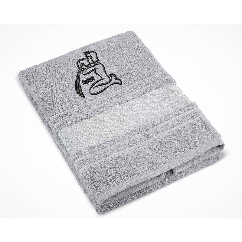Froté ručník S VÝŠIVKOU ZNAMENÍ ZVĚROKRUH VODNÁŘ, šedý, 50x100cm