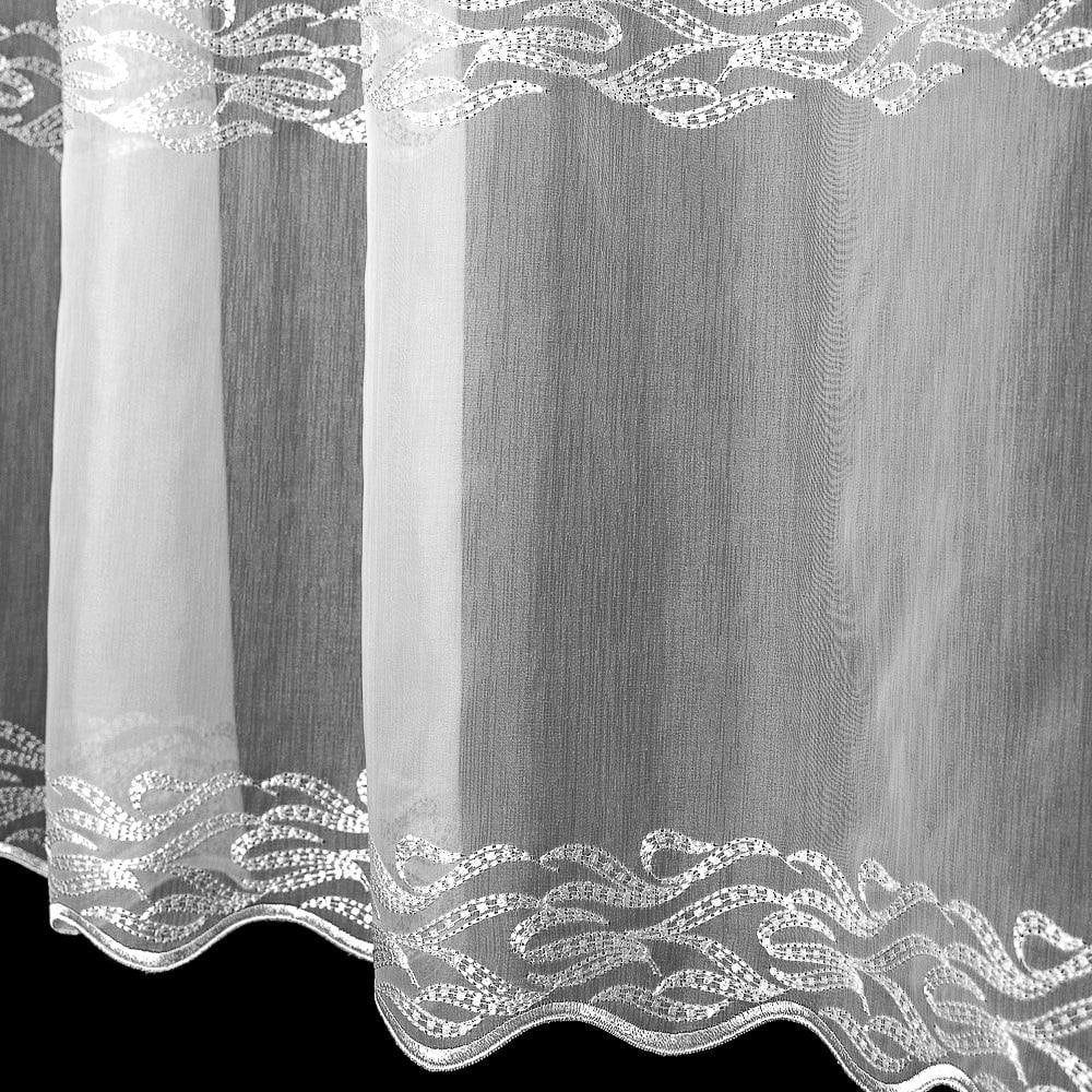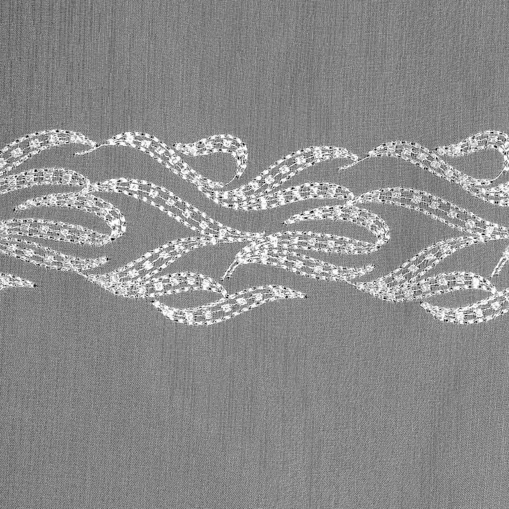 Kusová voálová záclona MIRELI 70920 vyšívané vlnky s bordurou, s řasicí páskou (více rozměrů)