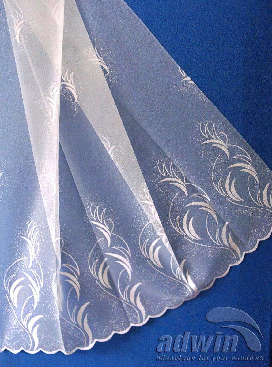 Metrážová žakárová záclona v bílé barvě s motivem větviček rostoucí z bordury a drobné větvičky rozprostřené po celé ploše, zakončená výraznou bordurou. Záclona je vyrobena ze 100% polyesteru a je dostupná v různých výškách. Výška záclony je měřena v nejdelším místě. Šířku záclony zadejte do kolonky "Množství"