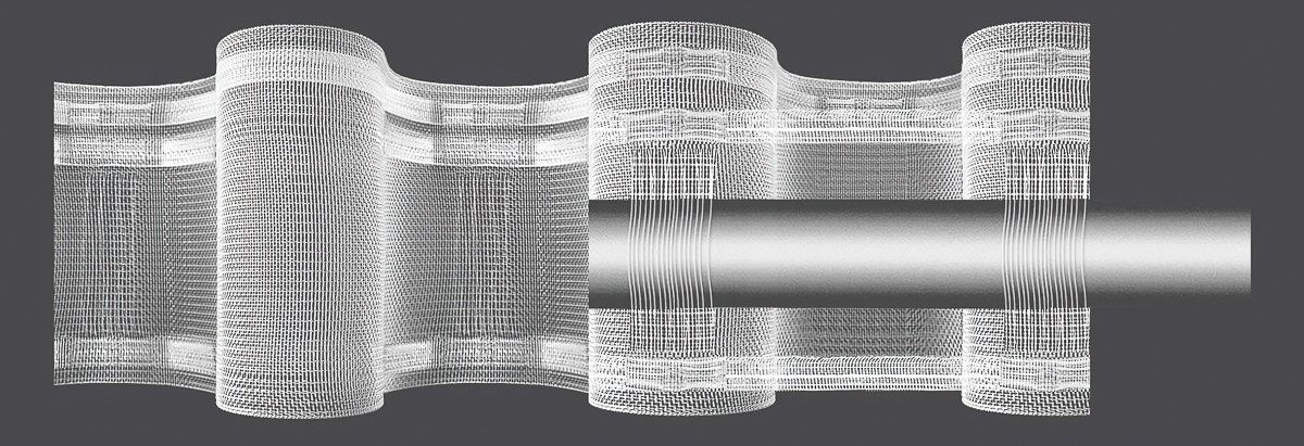 Záclonová řasící stuha pro snadné vytvoření efektních pravidelných vlnek (skladů) na zácloně nebo závěsu a zpevnění horn...