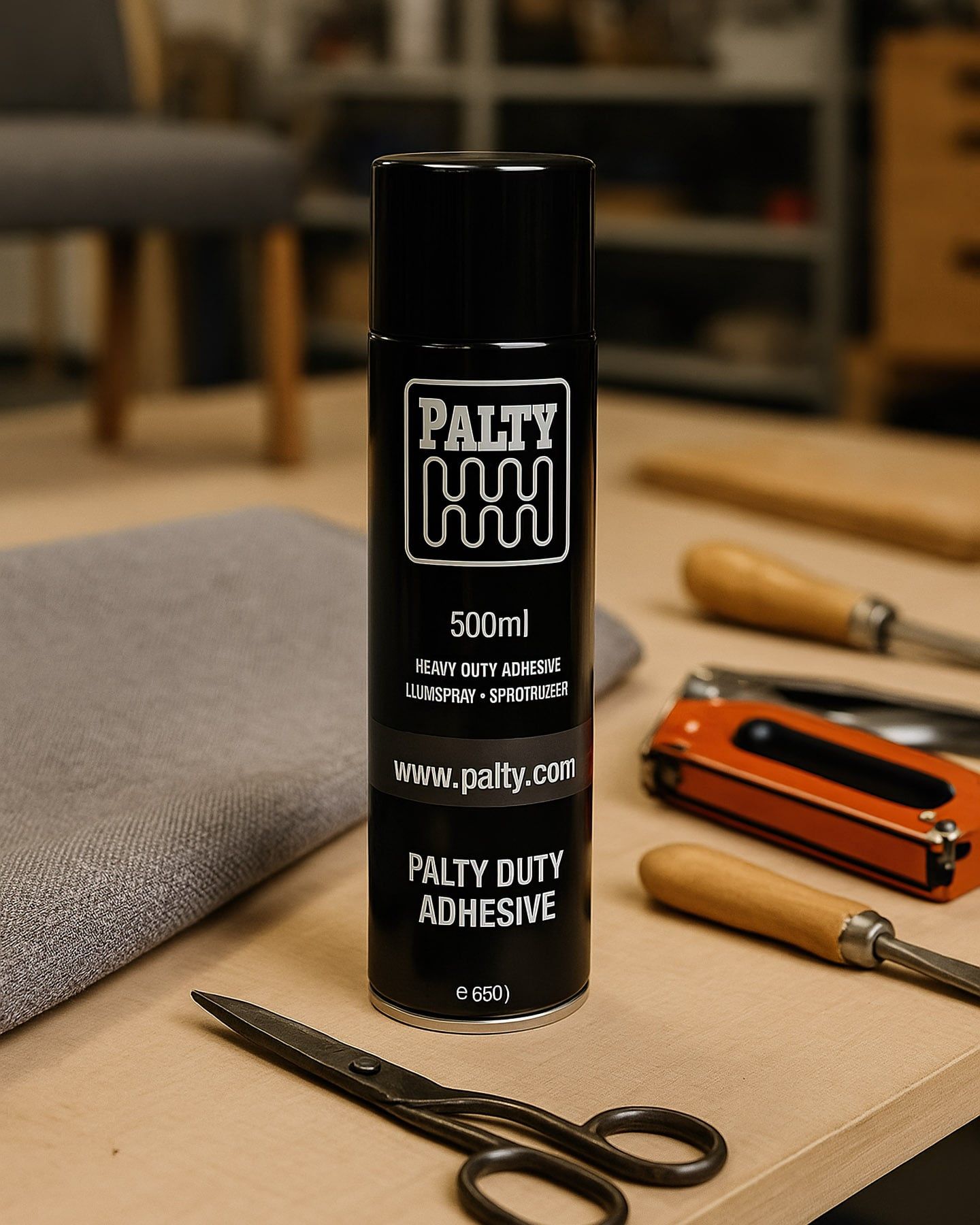 Čalounické lepidlo ve spreji PALTY HEAVY DUTY ADHESIVE, profesionální použití, vysoká pevnost, 500 ml