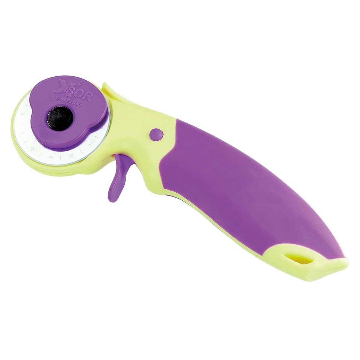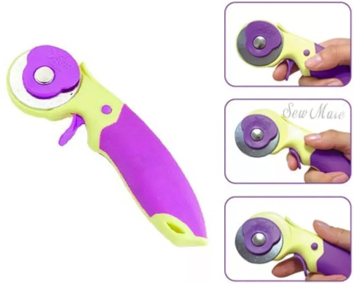 Kvalitní řezací kolečko na látky a patchwork značky DONWEI s rovnou čepelí o průměru 45 mm. Kruhový řezač umožňuje komfortní a přesné řezání látek. Řezací kolečko má pohodlnou měkčenou rukojeť vhodnou pro leváky i praváky a pojistku pro zablokování vysunuté či zasunuté čepele. Vyměnitelná řezací čepel je vyrobená z velmi kvalitní ocele s karbonem, což zajišťuje dlouhou životnost a ostrost při použití s kvalitní řezací podložkou. Pro nejvyšší přesnost nezapomeňte použít také řezací pravítko.