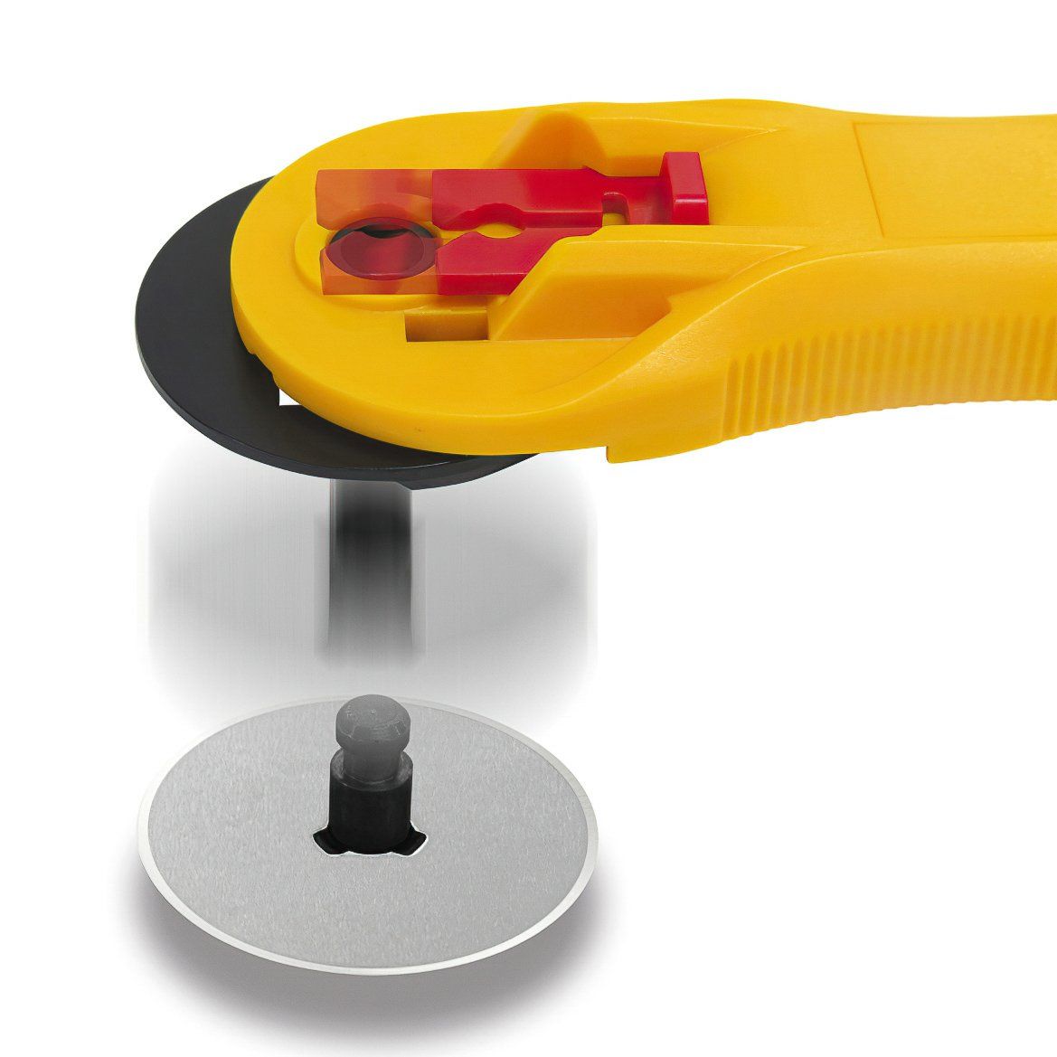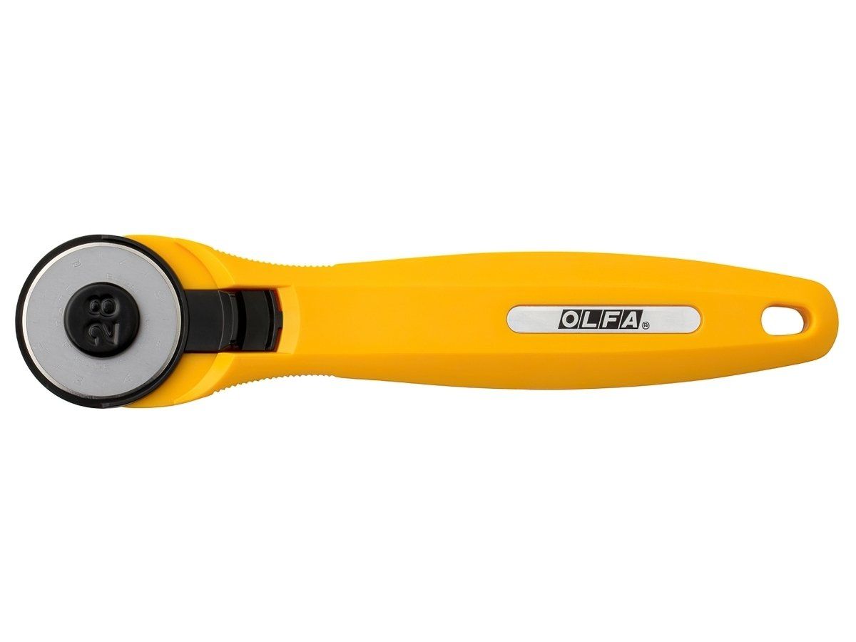 Rotační kruhový řezač japonské, vysoce kvalitní značky OLFA nejen na látky a patchwork s rovnou čepelí o průměru 28 mm. Kruhový řezač umožňuje komfortní a přesné řezání látek i ve více vrstvách. Rukojeť je vhodná pro leváky i praváky. Samozřejmostí je výsuvná bezpečnostní ochrana čepele, která je ostrá jako břitva a je vyměnitelná. Hravě tak zvládne řezat i tvrdší materiály, jako papír, kartony apod. Pro dlouhou životnost použijte kvalitní řezací podložku a pro nejvyšší přesnost nezapomeňte použít řezací pravítko.
