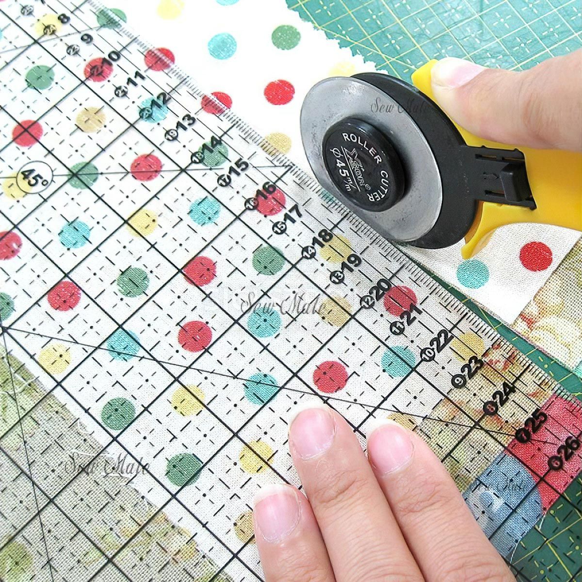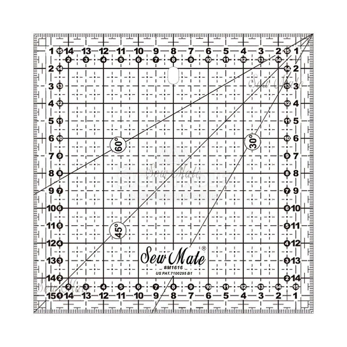 Rastrové pravítko na látky a patchwork značky DONWEI s černým popisem, které je vhodné především na světlé látky. Pravítko je určené pro přesné měření a řezání čtverců, trojúhelníků a jiných obrazců zejména ve spojení s řezací podložkou a řezacím kolečkem. Pravítko je dostupné v metrické verzi s číslováním zleva doprava a opačně, naznačeny jsou úhly 30°, 45° a 60°. Rozměr pravítka je 16 x 16 cm.
