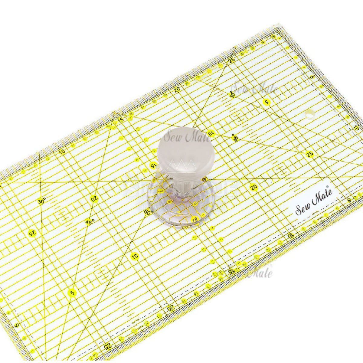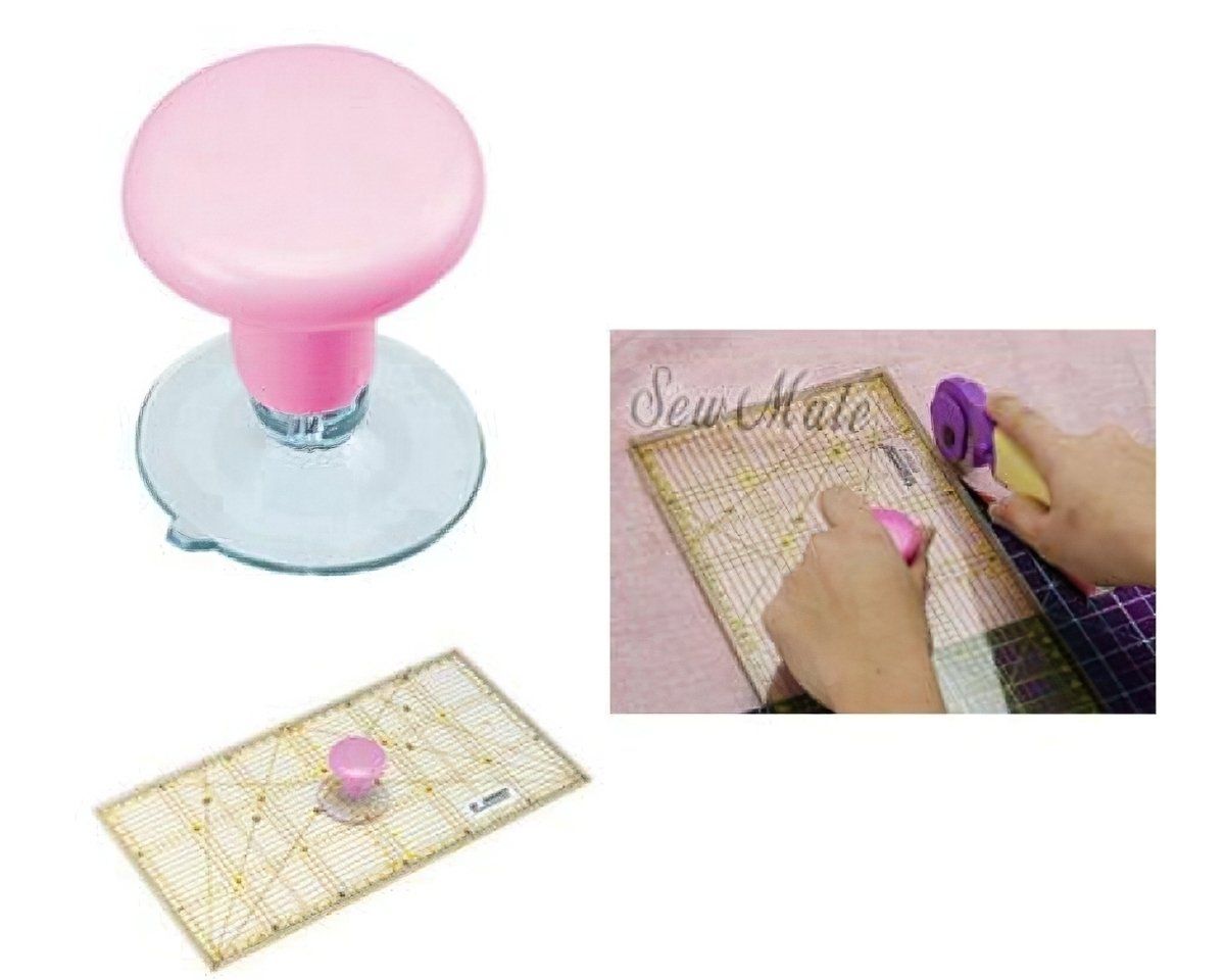 Plastový držák na rastrové pravítko na látky a patchwork značky DONWEI v jednoduchém provedení. Speciální úchyt s přísavkou umožní jednoduše zvedat a přikládat pravítko na látku položenou na řezací desce. Průměr držáku je cca 38 mm, výška cca 41 mm.