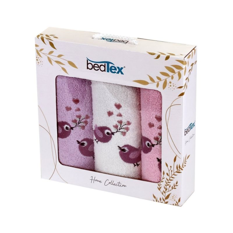 Dárkový set froté ručníků PTÁČCI, růžový s výšivkou, 30x50cm, 3ks