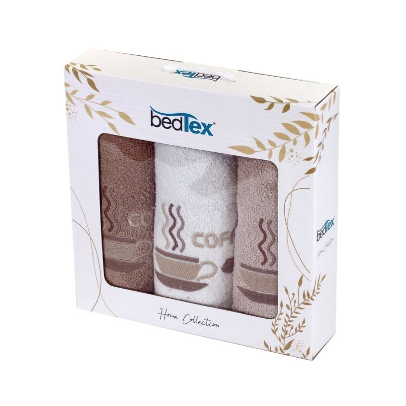 Dárkový set froté ručníků RANNÍ KÁVA, béžový s výšivkou, 30x50cm, 3ks