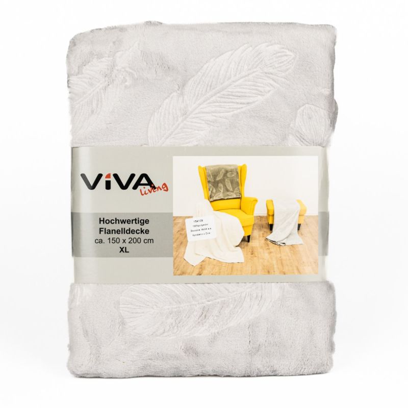 Deka z mikroflanelu (100% polyester) se vzorem vytláčeného vzoru peříček ve světle šedé barvě. Deka je lehká, hebká příjemná na dotek. Deka je v rozměru na jednolůžko 150 x 200 cm.