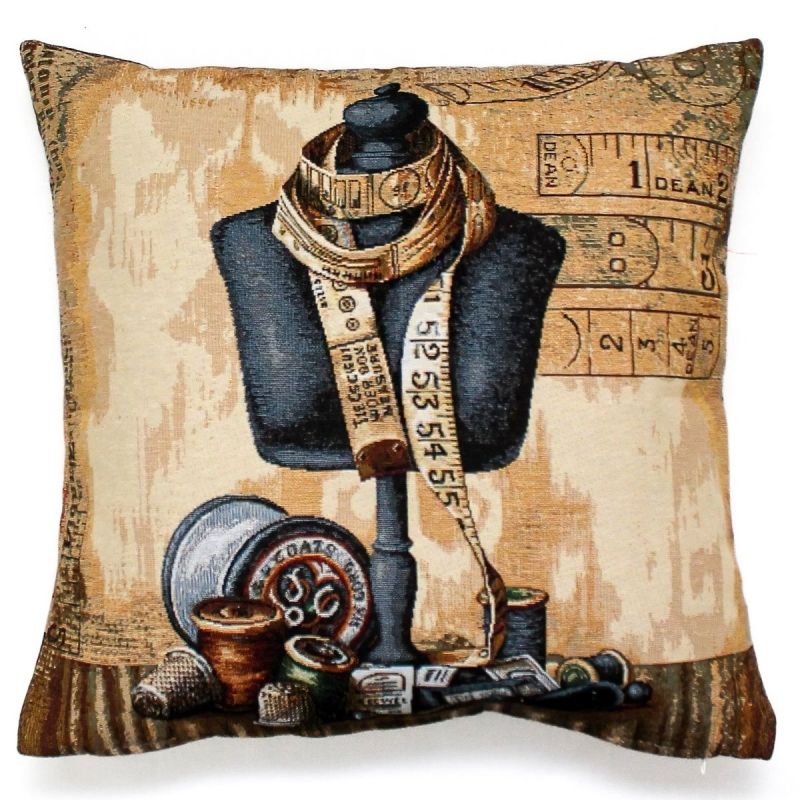 Dekorační polštářek / povláček RETRO KREJČOVSKÁ PANNA- ŠITÍ, hnědá, 45x45cm