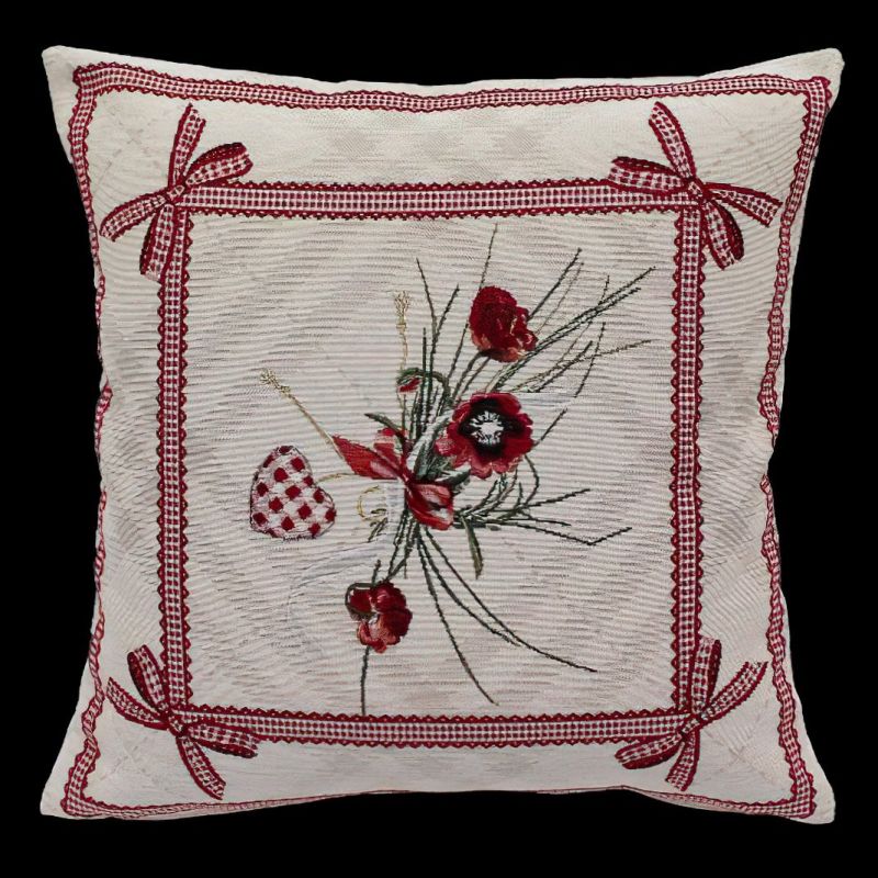 Dekorační polštářek / povláček RETRO VLČÍ MÁKY ORÁMOVANÉ MAŠLÍ, červená, 45x45cm