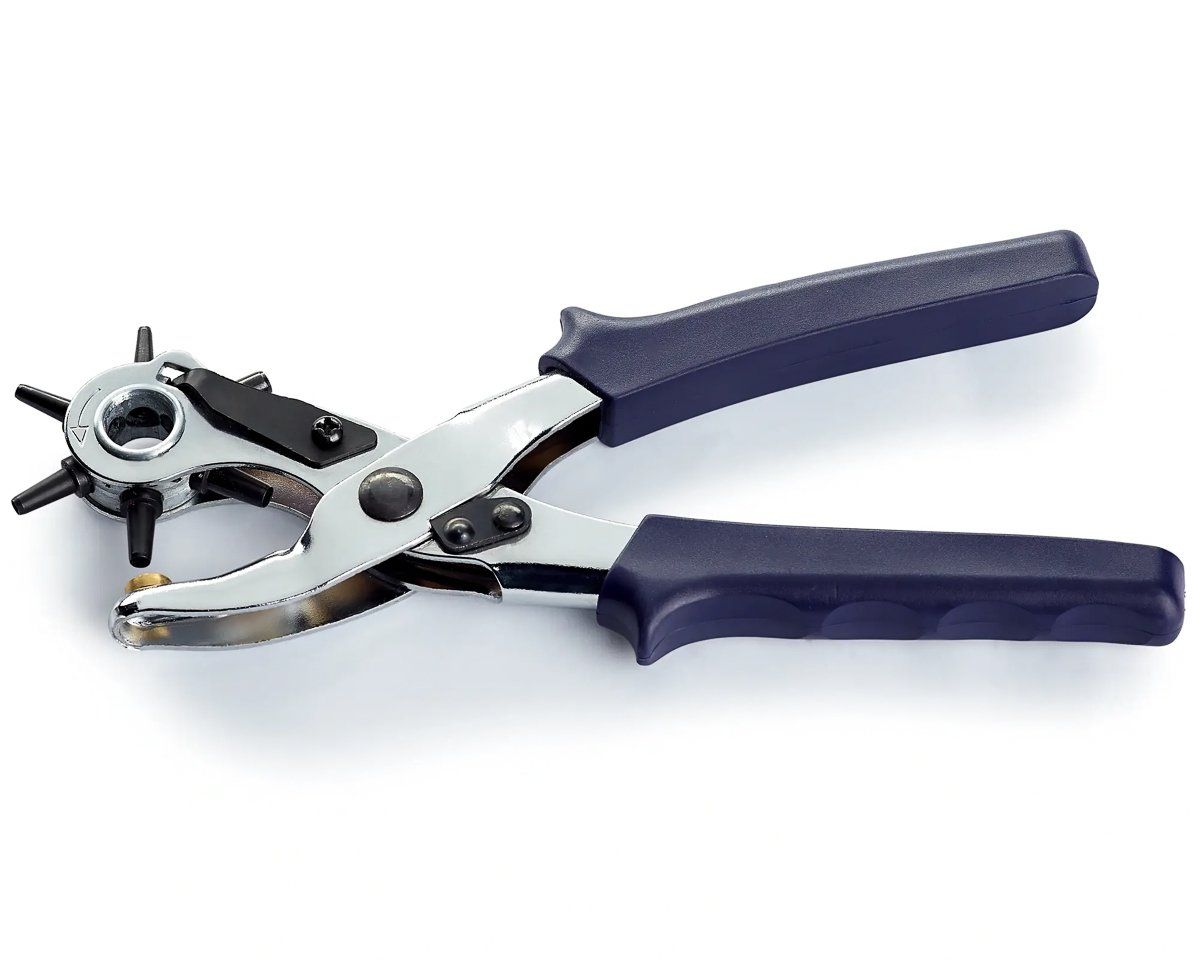 Děrovací kleště PRYM by neměly chybět žádné švadleně ani v žádné domácnosti. Kleště jsou velmi flexibilní díky škále děrovacích nástrojů o průměru 2,5-5mm. Hlavní výhodou je to, že máte všechny průměry při ruce díky jednoduchému otočení revolveru si můžete zvolit správnou velikost. Pro snadné držení mají kleště ergonomickou plastovou rukojeť, díky které se vám budou pohodlně držet. Kleště využijete například na opasky, spony, kůži, měkké i silné materiály.