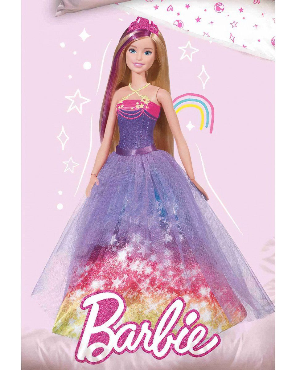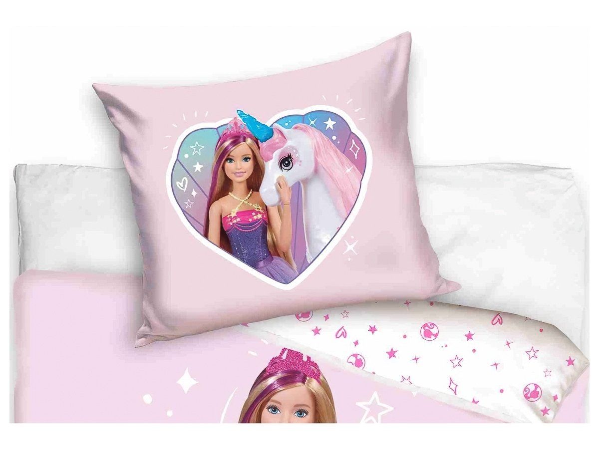 Dětské bavlněné povlečení do postýlky s motivem Barbie jako princezny na růžovém podkladu. Rubová strana je bílá s růžovými hvězdičkami a srdíčky. Souprava je vyrobena ze 100% bavlny a obsahuje jeden povlak na přikrývku 100 x 135 cm a jeden povlak na polštář 40 x 60 cm. Zapínání na zip.Dětské povlečení rozveselí každý dětský pokojíček a dětem se v něm bude krásně usínat. Maminky zase ocení vysoce kvalitní materiál, díky kterému si povlečení zachová své vlastnosti i po mnoha vypráních. Díky speciální technice tisku je také zaručena barevná stálost. Povlečení doporučujeme prát na 40°C tiskem dovnitř, při nastavení nižších otáček ždímání si také usnadníte žehlení. Vyberte si to pravé pro Vaše dítě.