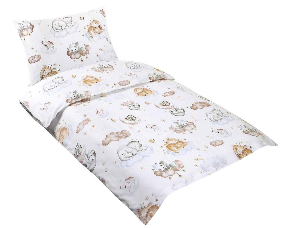 Dětské povlečení do postýlky ZVÍŘÁTKA NA OBLÁČKU, bílé, bavlna hladká, 90x135cm + 45x60cm