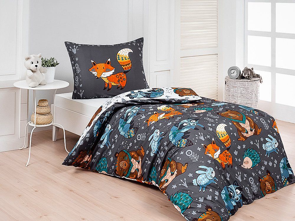 Dětské bavlněné povlečení s motivem lišek a lesních zvířátek po celé ploše v šedém provedení. Povlak na přikrývku je oboustranný, z druhé strany jsou však zvířátka na bílém podkladu. Souprava je vyrobena ze 100% bavlny a obsahuje jeden povlak na přikrývku 140 x 200 cm a jeden povlak na polštář 70 x 90 cm. Zapínání na zip. Vzor je tištěn nejmodernějším digitálním tiskem, který zajišťuje vysoce precizní detail.Povlečení z kolekce Matějovský ze 100% bavlny. U povlečení z kolekce Matějovský je použit vysoce kvalitní materiál se speciální úpravou, díky které je pevnější a zachová si svůj tvar i po mnoha vypráních. Díky speciální technice tisku je také zaručena barevná stálost. Povlečení doporučujeme prát na 40°C tiskem dovnitř, při nastavení nižších otáček ždímání si také usnadníte žehlení s výjimkou krepového povlečení, které se nežehlí. Vyberte si to pravé právě pro Vás!