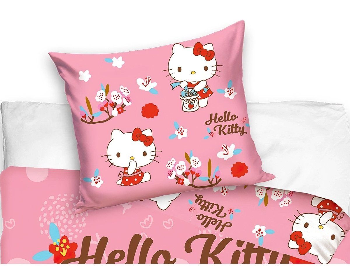 Dětské bavlněné povlečení do postýlky s motivem kočičky Kitty s mašlí na růžovém pozadí. Z druhé strany jsou květiny a Hello KItty na růžové. Souprava je vyrobena ze 100% bavlny renforcé a obsahuje jeden povlak na přikrývku 100 x 135 cm a jeden povlak na polštář 40 x 60 cm. Zapínání na zip.Dětské povlečení rozveselí každý dětský pokojíček a dětem se v něm bude krásně usínat. Maminky zase ocení vysoce kvalitní materiál, díky kterému si povlečení zachová své vlastnosti i po mnoha vypráních. Díky speciální technice tisku je také zaručena barevná stálost. Povlečení doporučujeme prát na 60°C tiskem dovnitř, při nastavení nižších otáček ždímání si také usnadníte žehlení. Vyberte si to pravé pro Vaše dítě.