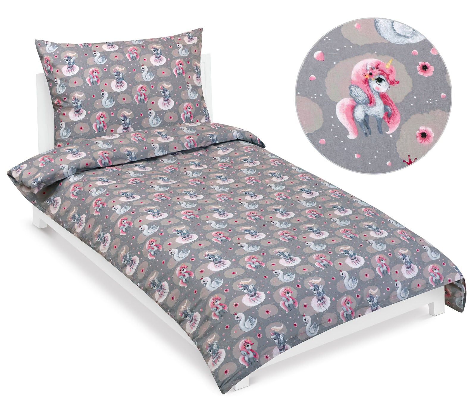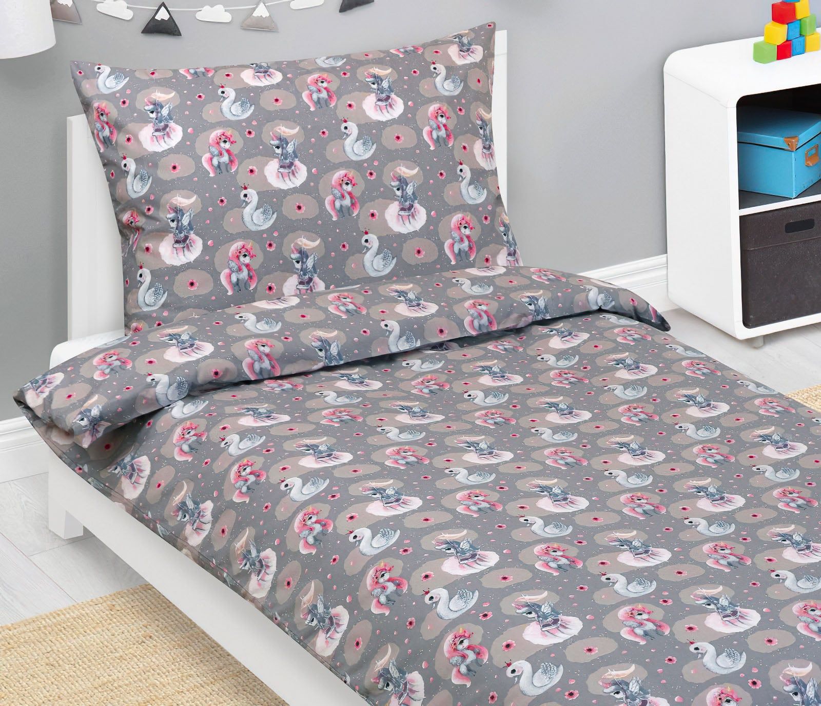 Dětské povlečení JEDNOROŽEC, LABUŤ ŠEDÁ, bavlna hladká, 140x200cm + 70x90cm