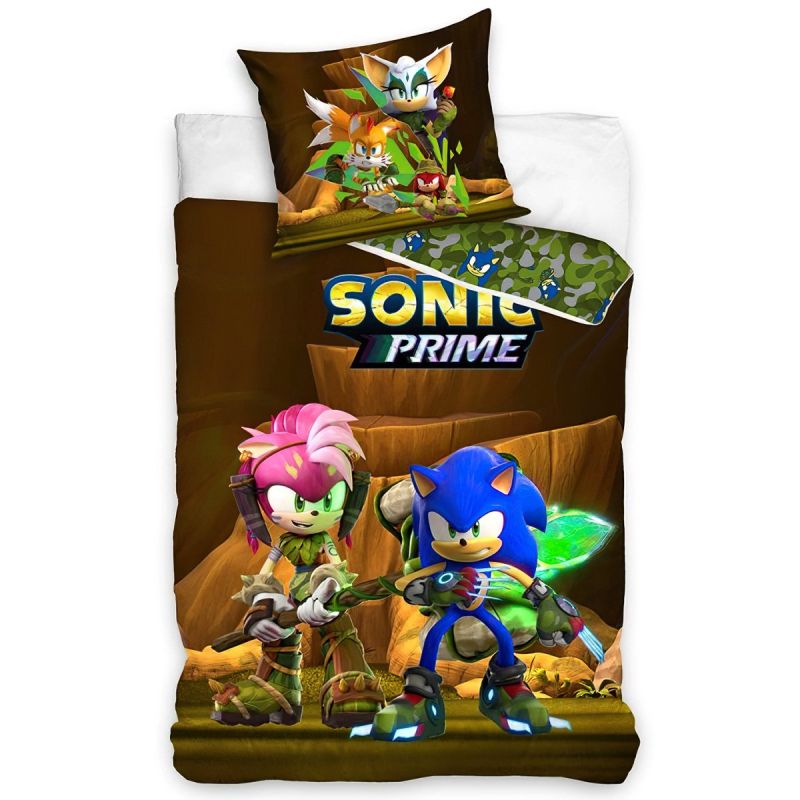 Dětské povlečení JEŽEK SONIC A AMY ROSE, fototisk, hnědé, bavlna hladká, 140x200cm + 70x90cm