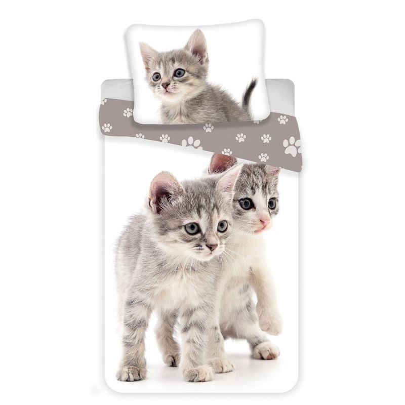 Dětské povlečení KITTEN GREY, koťata na bílé, fototisk, bavlna hladká, 140x200cm + 70x90cm