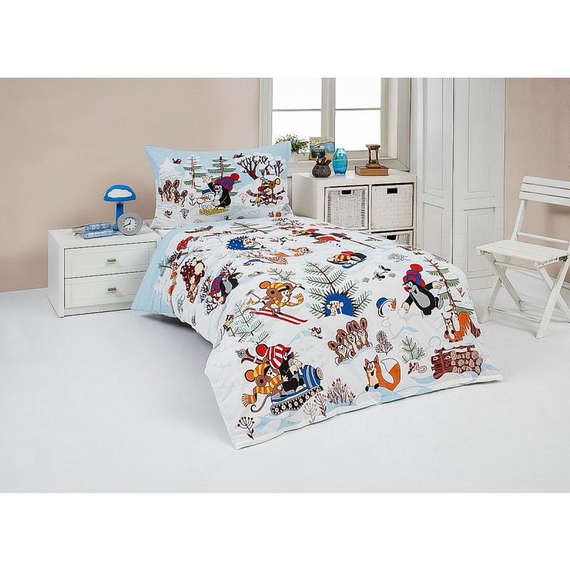 Dětské povlečení Matějovský KRTEK A ZIMA (Krteček), bílé, bavlna hladká, 140x200cm + 70x90cm