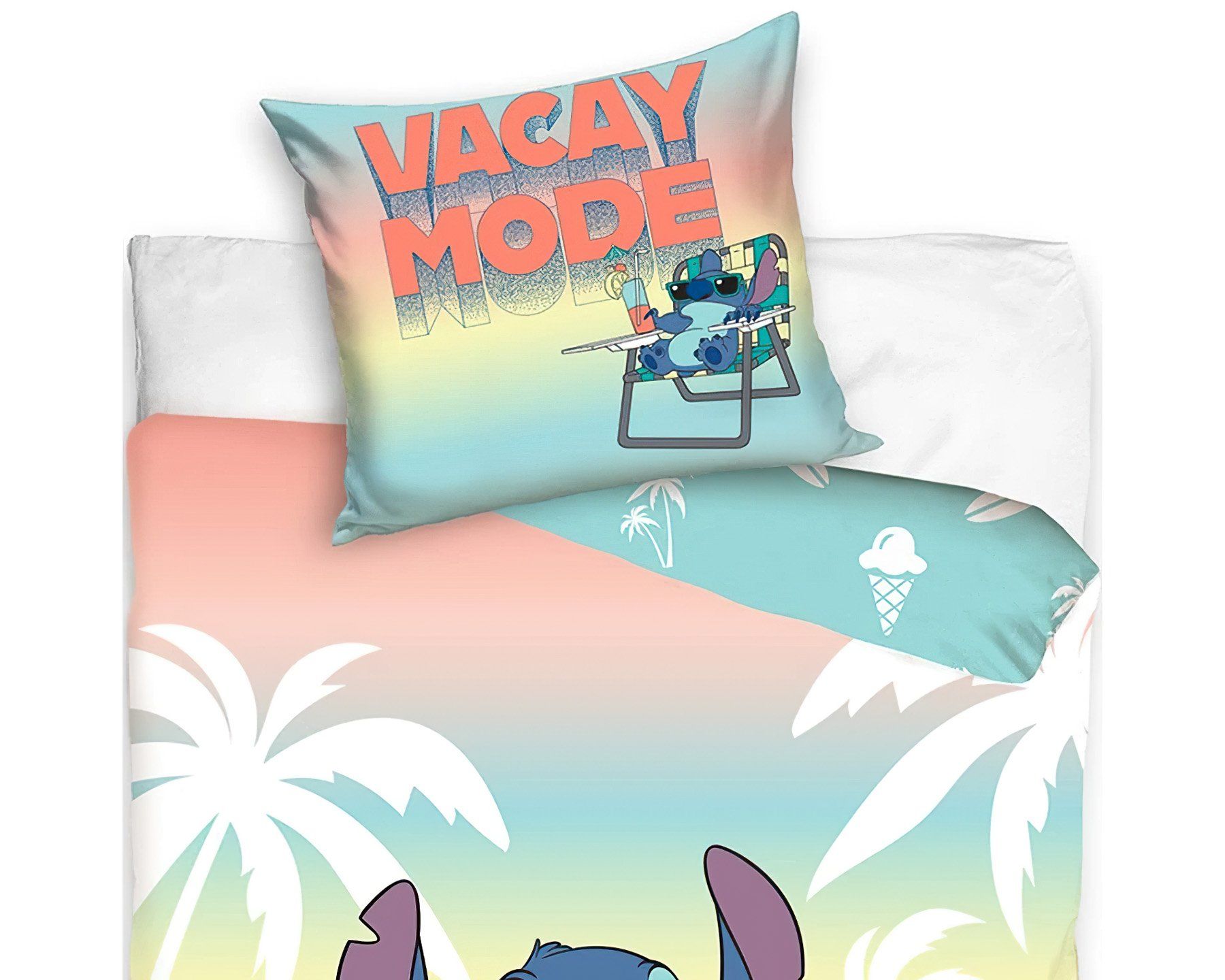 Dětské bavlněné povlečení s motivem malého pejska Stitche z animované komedie Lilo a Stitch na dovolené v duhových barvách. Povlečení je oboustranné. Z druhé strany jsou zmrzliny a palmy na mentolovém podkladu. Souprava je vyrobena ze 100% bavlny a obsahuje jeden povlak na přikrývku 140 x 200 cm a jeden povlak na polštář 70 x 90 cm. Zapínání na zip.