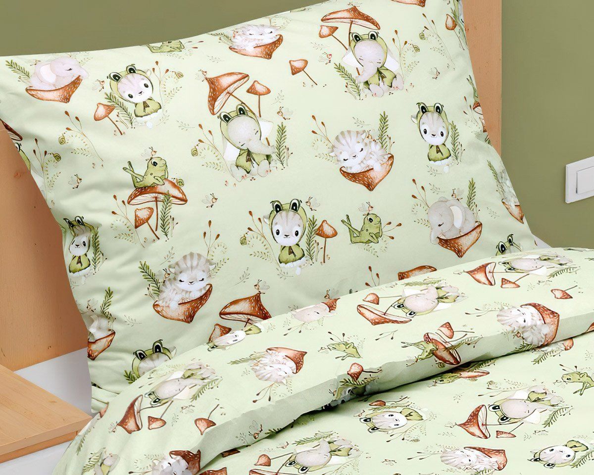 Dětské bavlněné povlečení s motivem malých zvířátek a světle zeleném podkladu. Povlečení je z obou stran stejné. Souprava je vyrobena ze 100% bavlny a obsahuje jeden povlak na přikrývku 140 x 200 cm a jeden povlak na polštář 70 x 90 cm. Zapínání na zip.Dětské povlečení rozveselí každý dětský pokojíček a dětem se v něm bude krásně usínat. Toto povlečení je jako stvořené pro všechny malé závodníky. Maminky zase ocení vysoce kvalitní materiál, díky kterému si povlečení zachová své vlastnosti i po mnoha vypráních. Díky speciální technice tisku je také zaručena barevná stálost. Povlečení doporučujeme prát na 40°C tiskem dovnitř, při nastavení nižších otáček ždímání si také usnadníte žehlení. Vyberte si to pravé pro Vaše dítě.