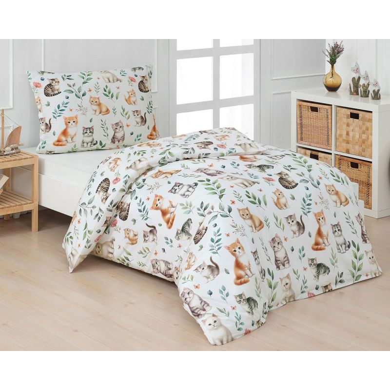Dětské povlečení Matějovský KITTY, kočky, bílé, bavlna hladká digitál, 140x200cm + 70x90cm