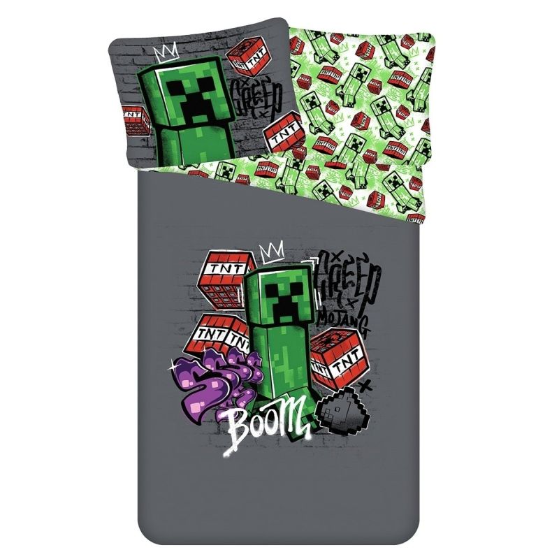 Dětské povlečení MINECRAFT METRO ART, šedo-zelené, bavlna hladká, 140x200cm + 70x90cm