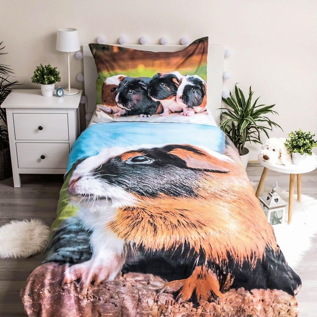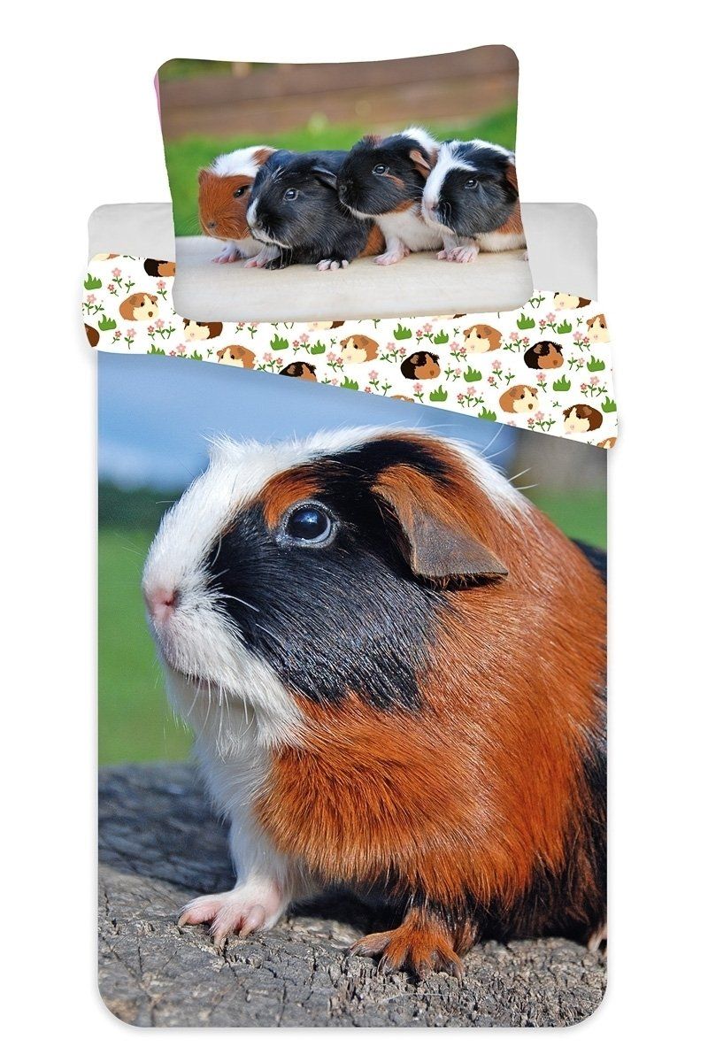 Dětské bavlněné povlečení se vzorem morčete. Povlečení je oboustranné, z druhé strany jsou kreslené morčátka na bílém podkladu. Souprava je vyrobena ze 100% bavlny renforcé a obsahuje jeden povlak na přikrývku 140 x 200 cm a jeden povlak na polštář 70 x 90 cm. Zapínání na zip.Dětské povlečení rozveselí každý dětský pokojíček a dětem se v něm bude krásně usínat. Maminky zase ocení vysoce kvalitní materiál, díky kterému si povlečení zachová své vlastnosti i po mnoha vypráních. Díky speciální technice tisku je také zaručena barevná stálost. Povlečení doporučujeme prát na 60°C tiskem dovnitř, při nastavení nižších otáček ždímání si také usnadníte žehlení. Vyberte si to pravé pro Vaše dítě.