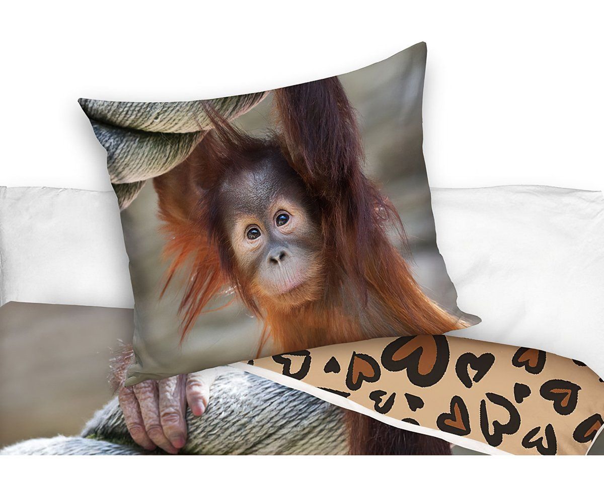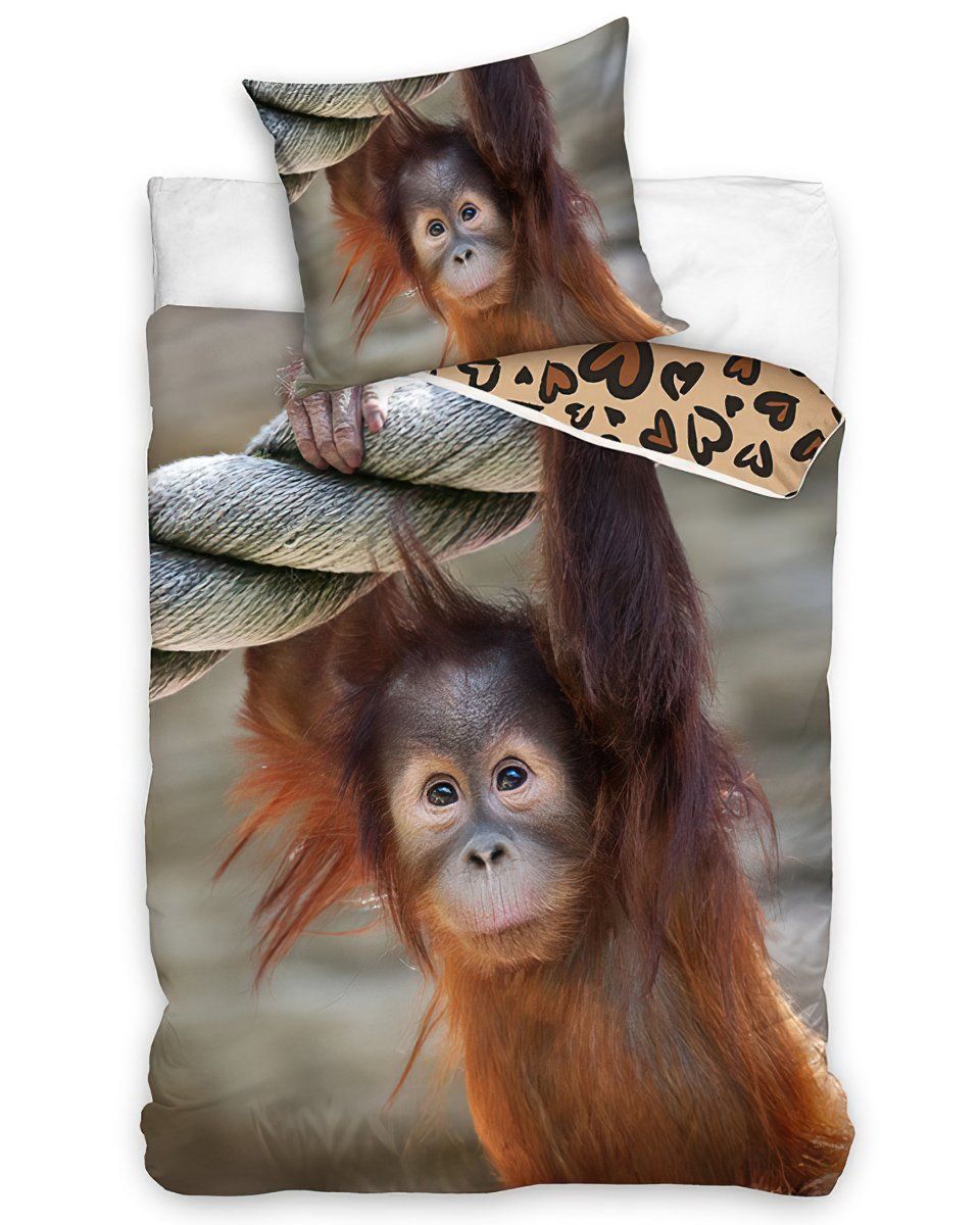 Dětské povlečení OPICE ORANGUTAN, fototisk, hnědé, bavlna hladká, 140x200cm + 70x90cm