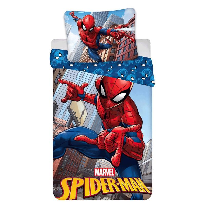 Dětské povlečení rozveselí každý dětský pokojíček a dětem se v něm bude krásně usínat. Povlečení s pavoučím hrdinou Spidermanem na světle modrém podkladu, které jistě každý malý kluk zná z kreslených komiksů, seriálů a filmů. Maminky zase ocení vysoce kvalitní materiál, díky kterému si povlečení zachová své vlastnosti i po mnoha vypráních. Díky speciální technice tisku je také zaručena barevná stálost. Povlečení doporučujeme prát na 40°C tiskem dovnitř, při nastavení nižších otáček ždímání si také usnadníte žehlení. Vyberte si to pravé pro Vaše dítě.