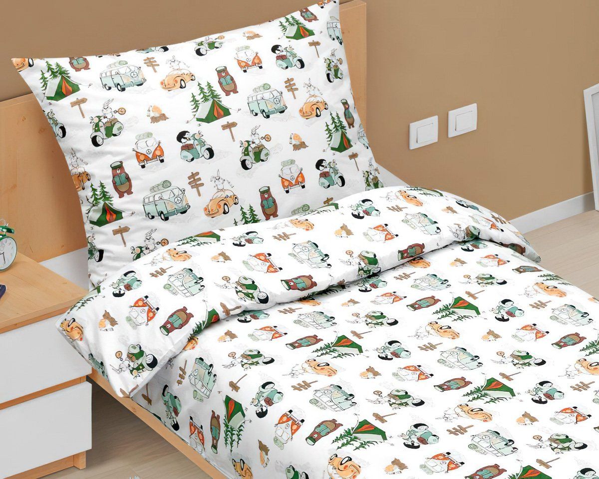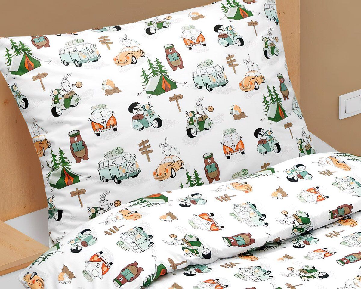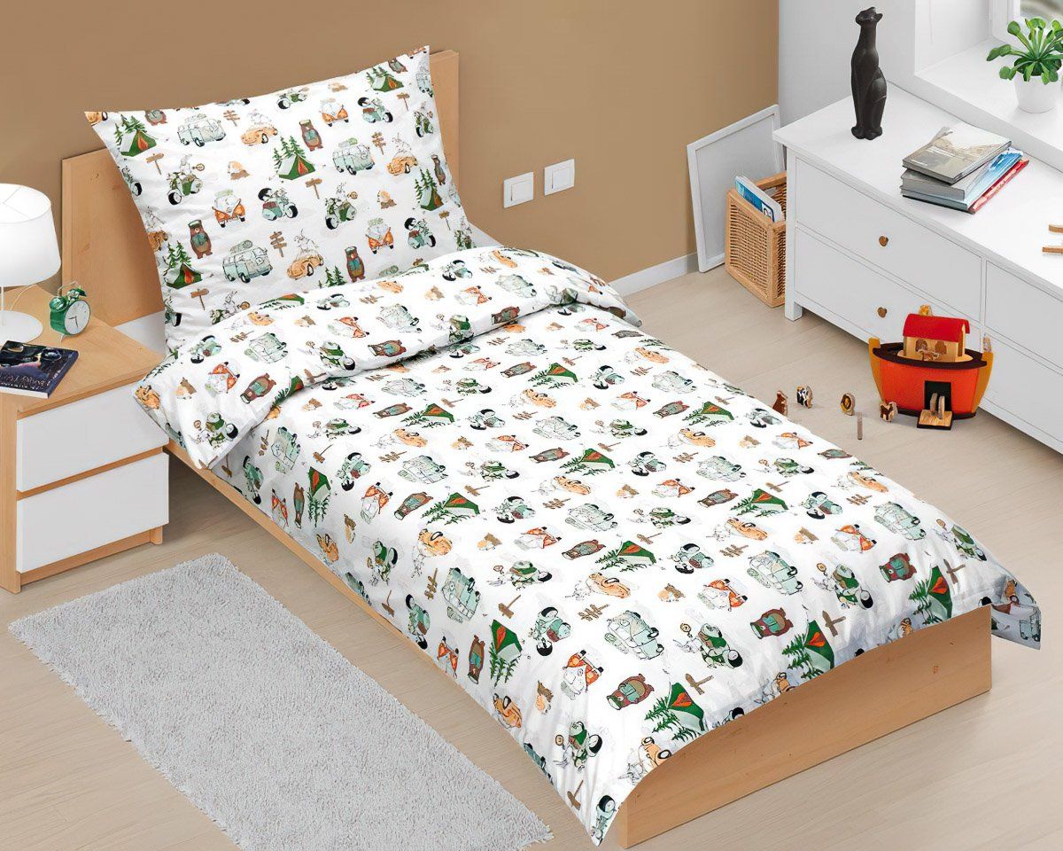 Dětské bavlněné povlečení s motivem pro malé zálesáky, stanování v lese na bílém podkladu. Povlečení je z obou stran stejné. Souprava je vyrobena ze 100% bavlny a obsahuje jeden povlak na přikrývku 140 x 200 cm a jeden povlak na polštář 70 x 90 cm. Zapínání na zip.Dětské povlečení rozveselí každý dětský pokojíček a dětem se v něm bude krásně usínat. Toto povlečení je jako stvořené pro všechny malé závodníky. Maminky zase ocení vysoce kvalitní materiál, díky kterému si povlečení zachová své vlastnosti i po mnoha vypráních. Díky speciální technice tisku je také zaručena barevná stálost. Povlečení doporučujeme prát na 40°C tiskem dovnitř, při nastavení nižších otáček ždímání si také usnadníte žehlení. Vyberte si to pravé pro Vaše dítě.