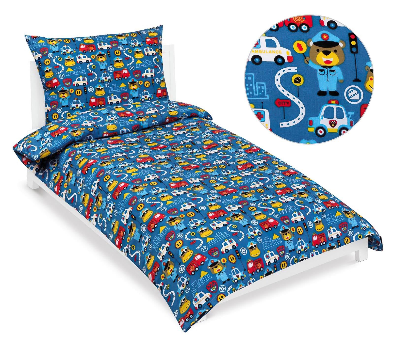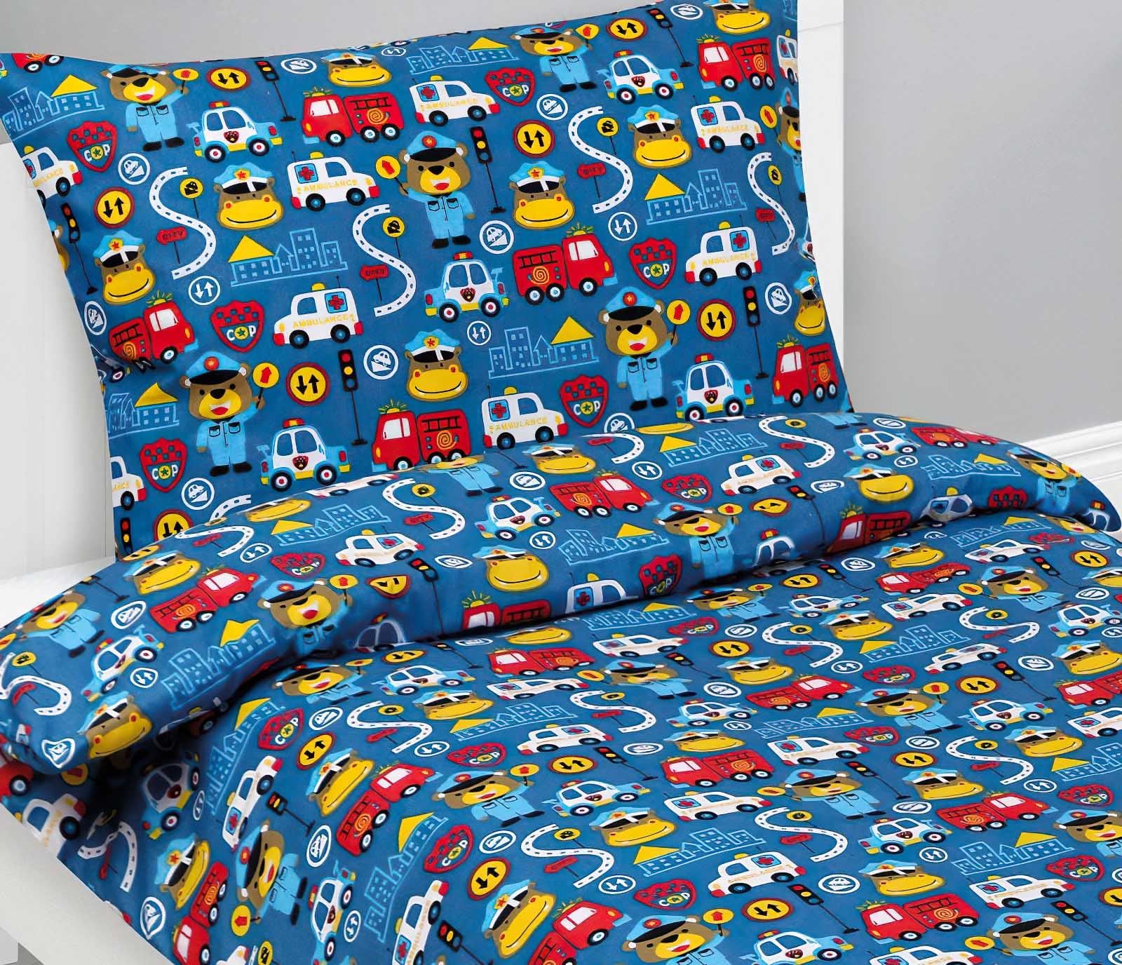 Dětské bavlněné povlečení s motivem medvídků jako policajtů, záchranářů či hasičů se záchranářskými auty na modrém pozadí. Povlečení je z obou stran stejné. Souprava je vyrobena ze 100% bavlny a obsahuje jeden povlak na přikrývku 140 x 200 cm a jeden povlak na polštář 70 x 90 cm. Zapínání na zip.Dětské povlečení rozveselí každý dětský pokojíček a dětem se v něm bude krásně usínat. Toto povlečení je jako stvořené pro všechny malé závodníky. Maminky zase ocení vysoce kvalitní materiál, díky kterému si povlečení zachová své vlastnosti i po mnoha vypráních. Díky speciální technice tisku je také zaručena barevná stálost. Povlečení doporučujeme prát na 40°C tiskem dovnitř, při nastavení nižších otáček ždímání si také usnadníte žehlení. Vyberte si to pravé pro Vaše dítě.