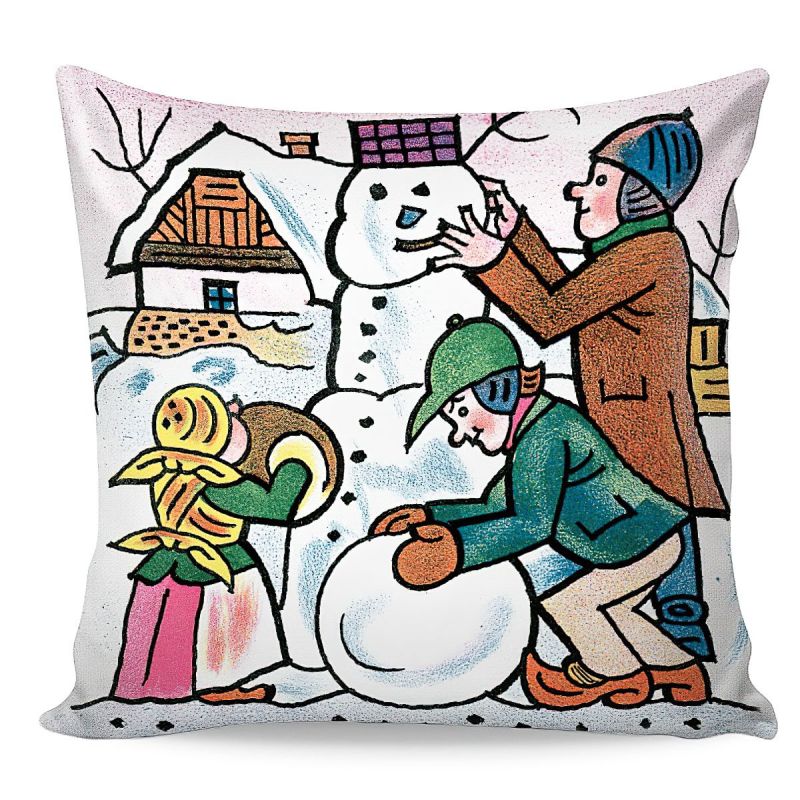 Dětský polštářek / povláček JOSEF LADA SNĚHULÁK, bílý zimní vzor, 40x40cm, 40x40cm (více variant výplně)