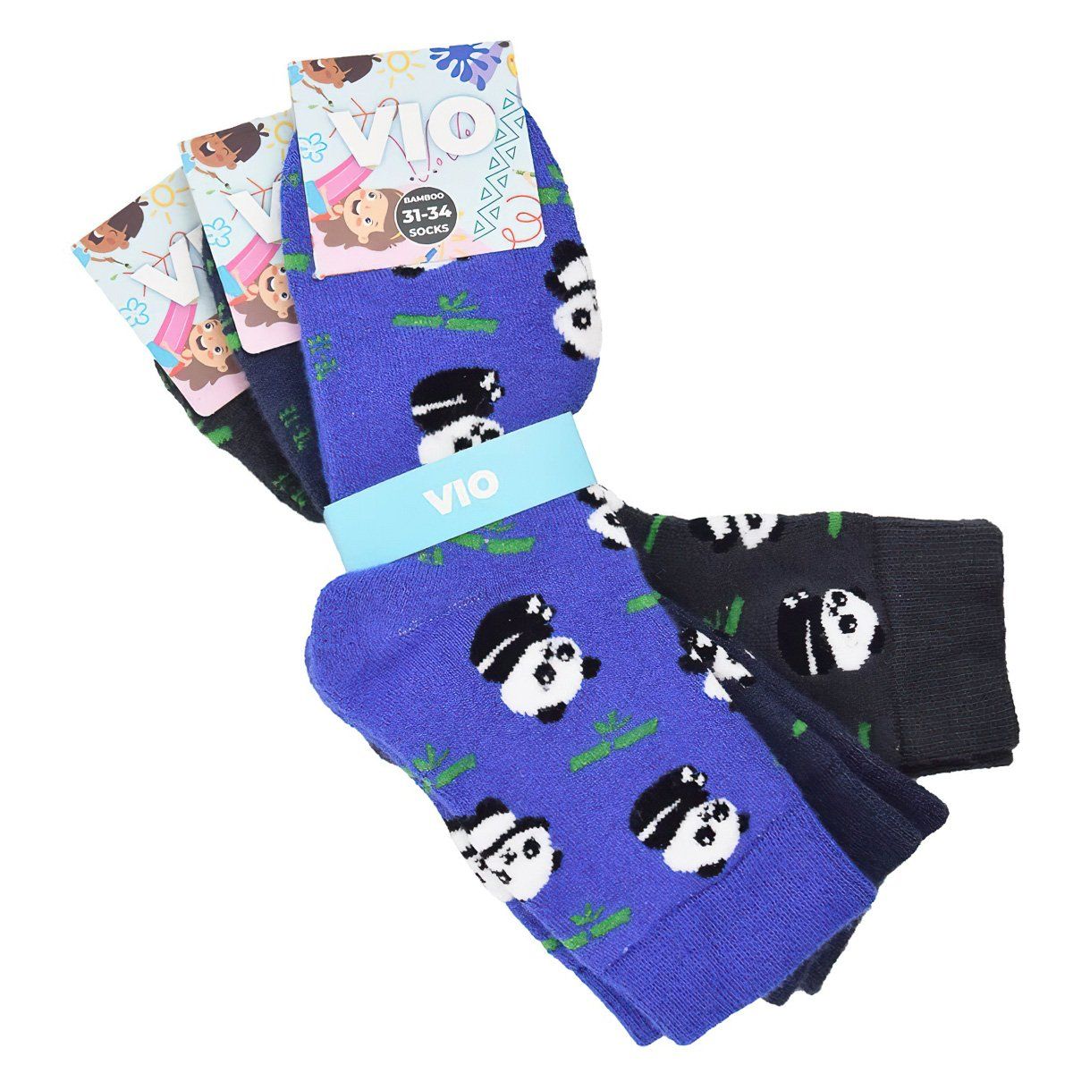 Dětské barevné, teplé froté bambusové a antibakteriální ponožky od značky VIO v modré barvě s pandami. Ponožky jsou příjemné, teplé a dobře se navlékají. Cena je uvedena za balení obsahující 3 páry ponožek.