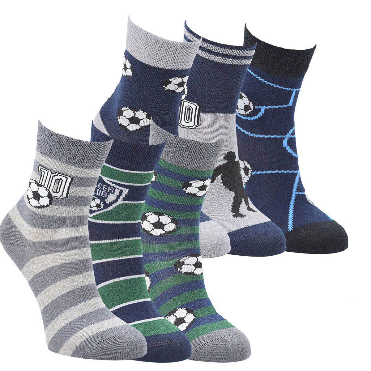 Ponožky dětské bavlněné 8100921, klasické, chlapecké, fotbal, mix1, modro-zelené, 6 párů (více velikostí)