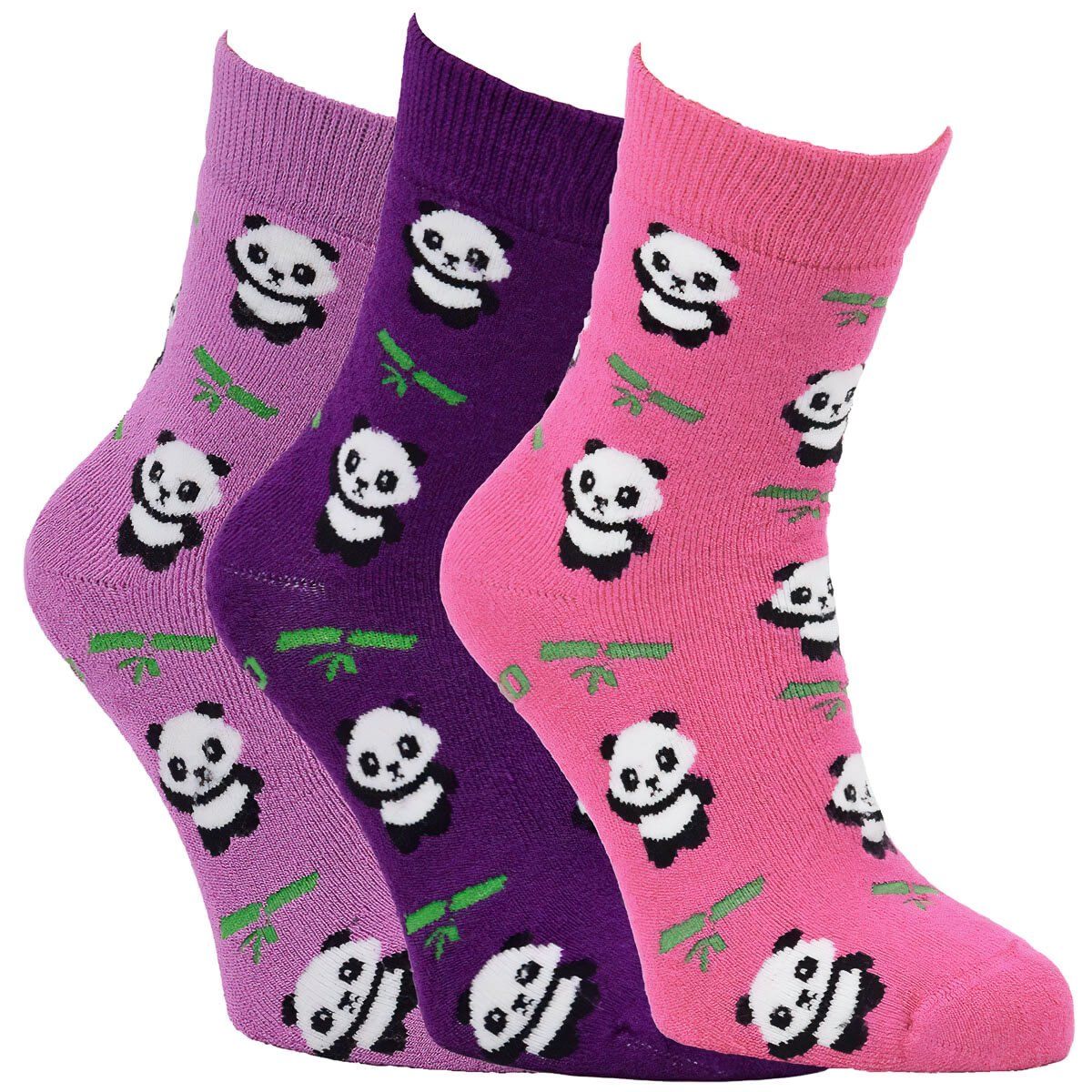 Ponožky dětské froté bambusové 8501024, zimní, dívčí, růžová panda, 3 páry (více velikostí)