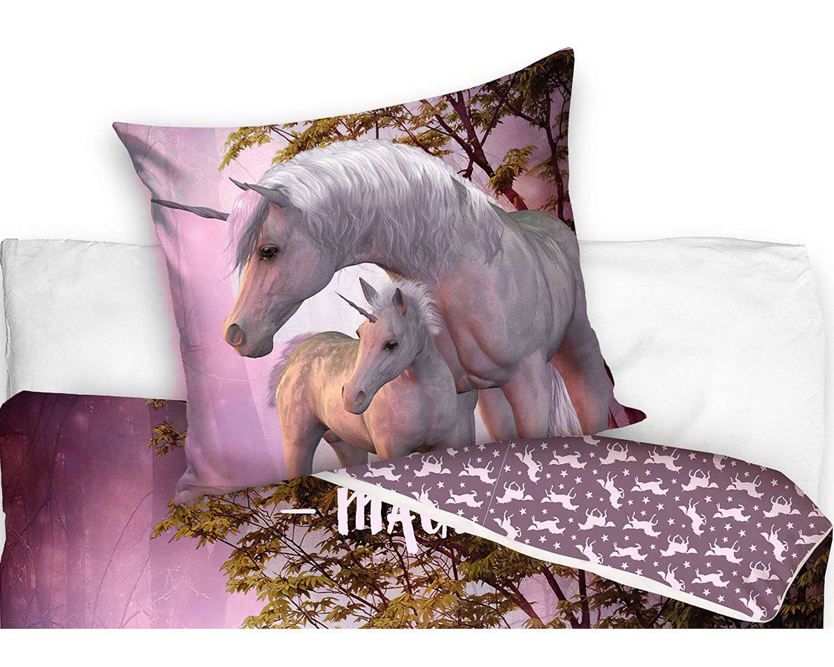Dětské povlečení JEDNOROŽEC BÁJNÝ KRASAVEC, fototisk, růžové, bavlna hladká, 140x200cm + 70x90cm