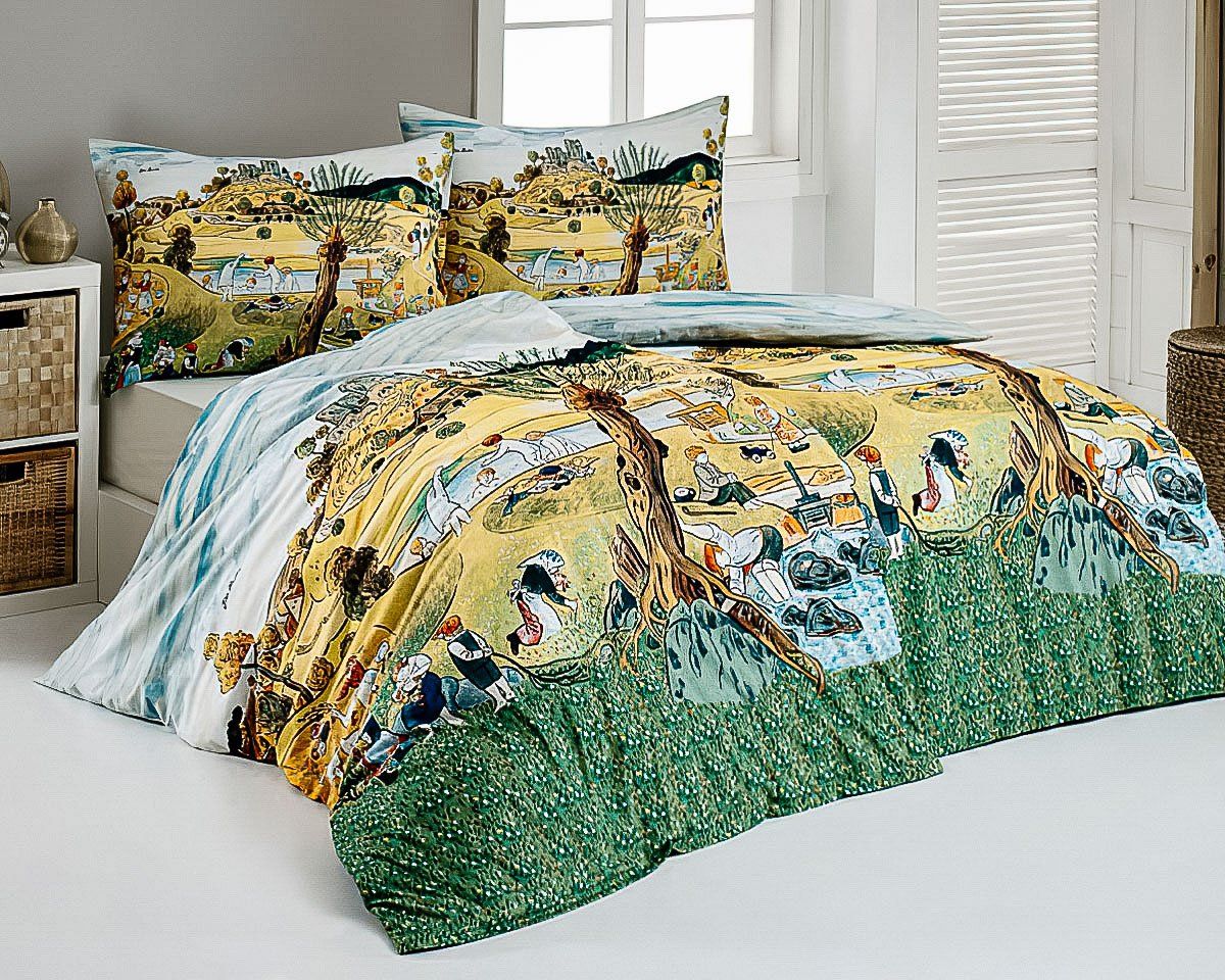 Povlečení Matějovský JOSEF LADA BUDULÍNEK, zelené, bavlna hladká digitál, 140x200cm + 70x90cm