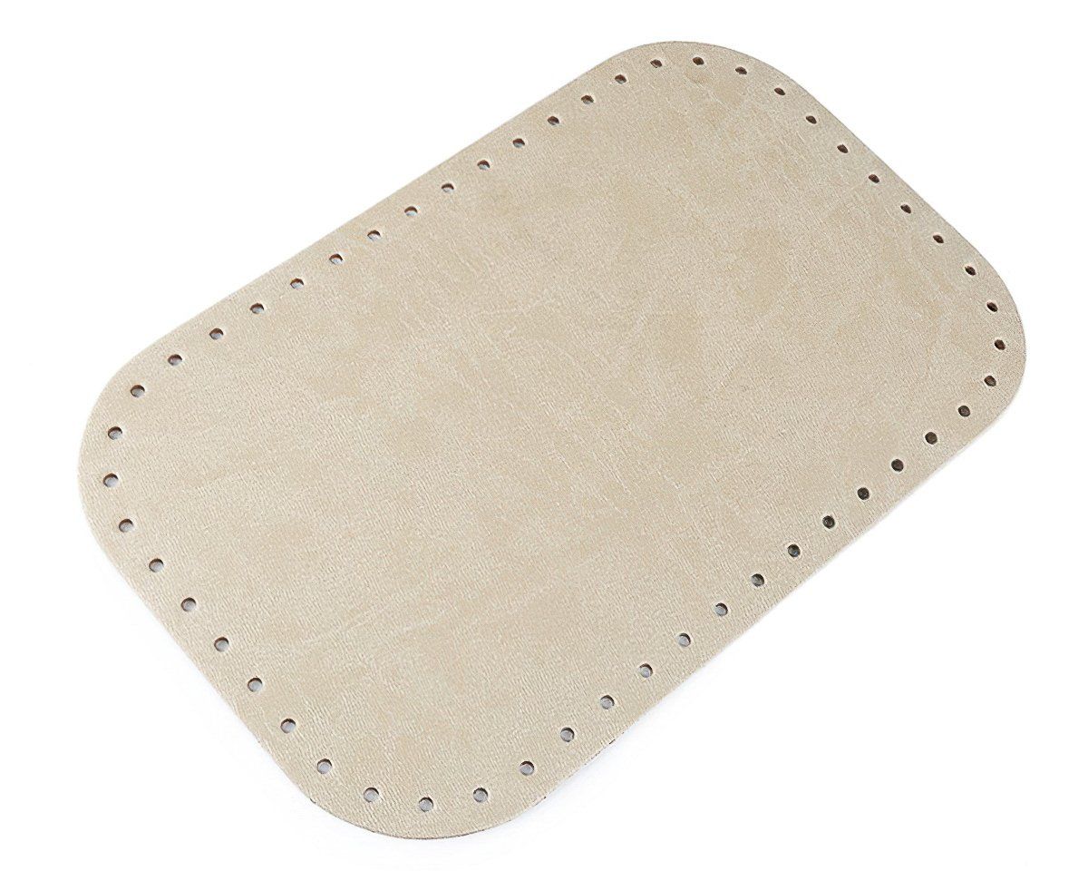 Dno z eko kůže v jednobarevné ecru béžové barvě. Vhodné na výrobu kabelek a tašek z přízí nebo špaget. Má v sobě malé otvory (Ø3 mm) pro snadnější práci. Tloušťka dna se může mírně lišit (2 - 3 mm).