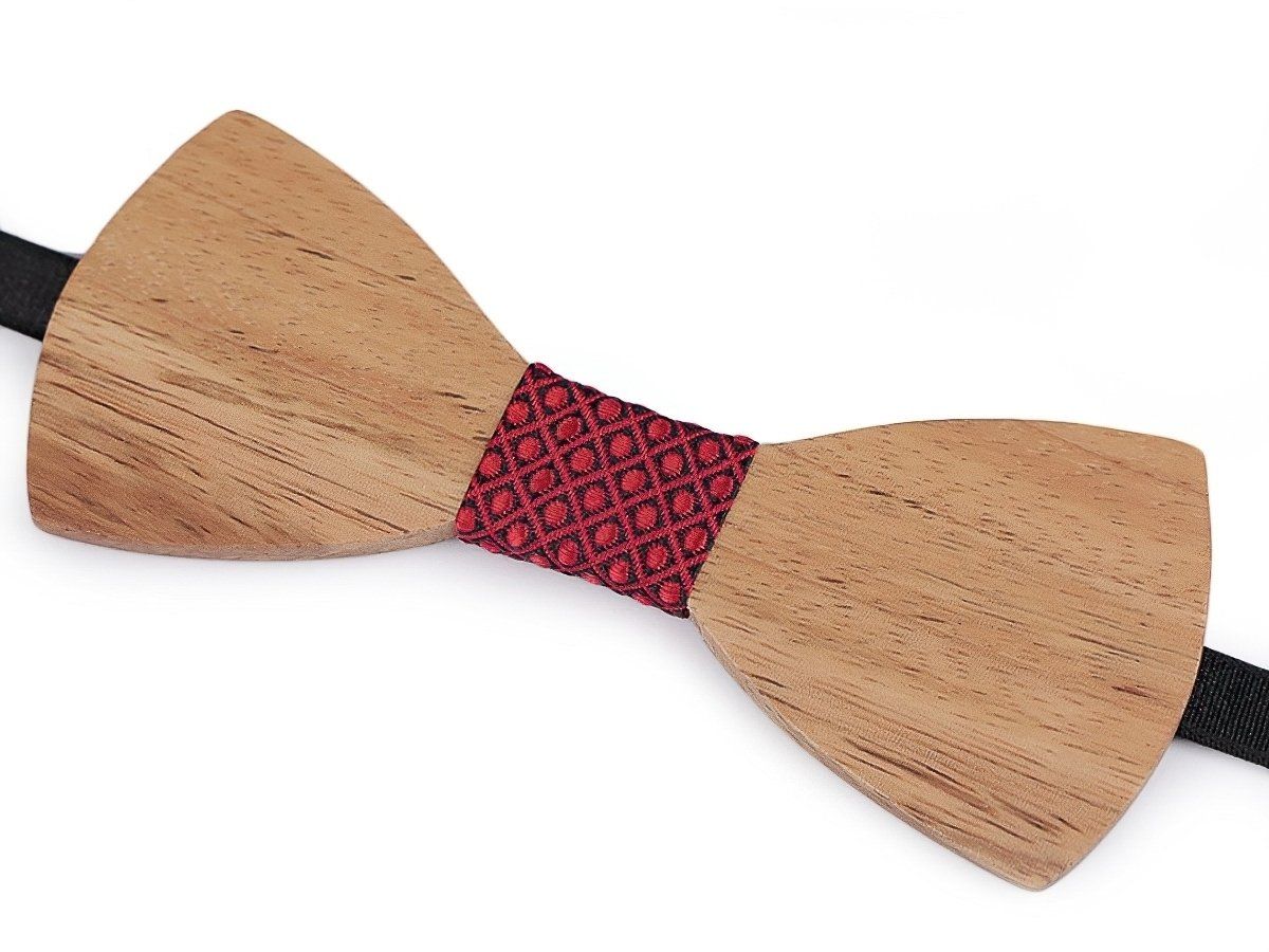 Dřevěný pánský elegantní motýlek v přírodním světle hnědém provedení s červenými prvky je aktuální trendová záležitost mezi módními doplňky. Hodí se pro slavnostní příležitosti i méně formální společenské akce.