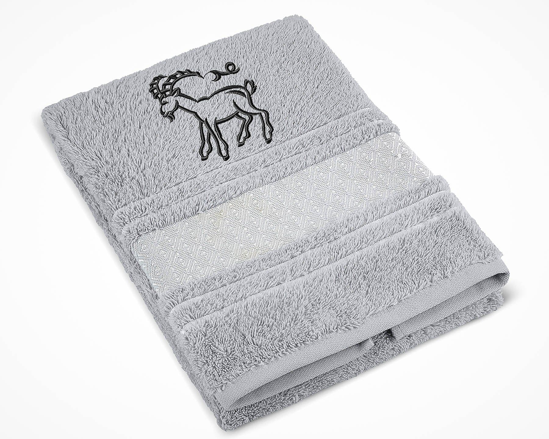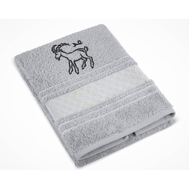 Froté ručník S VÝŠIVKOU ZNAMENÍ ZVĚROKRUH KOZOROH, šedý, 50x100cm