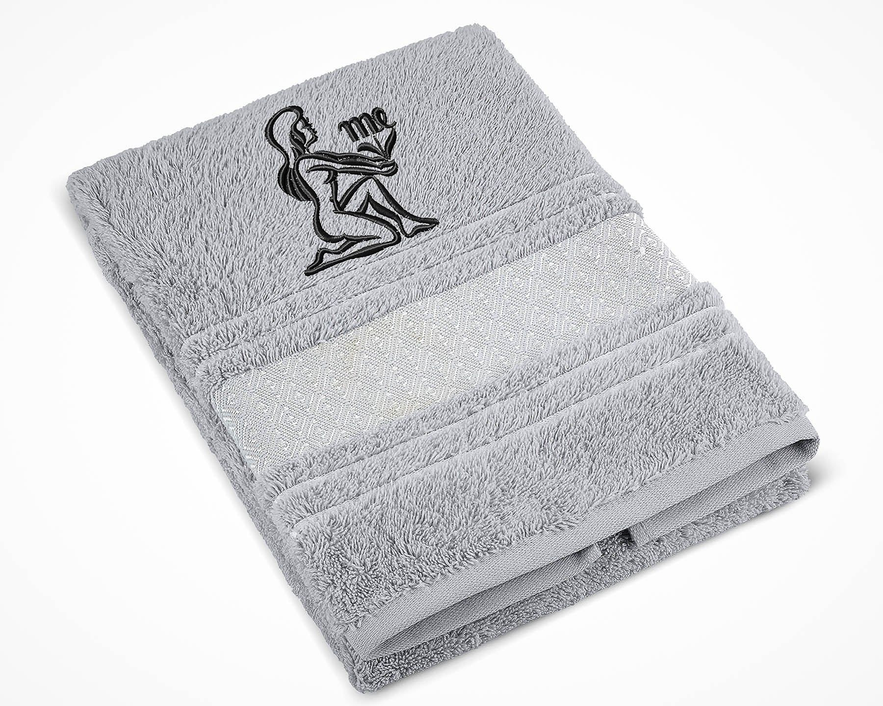 Froté ručník S VÝŠIVKOU ZNAMENÍ ZVĚROKRUH PANNA, šedý, 50x100cm