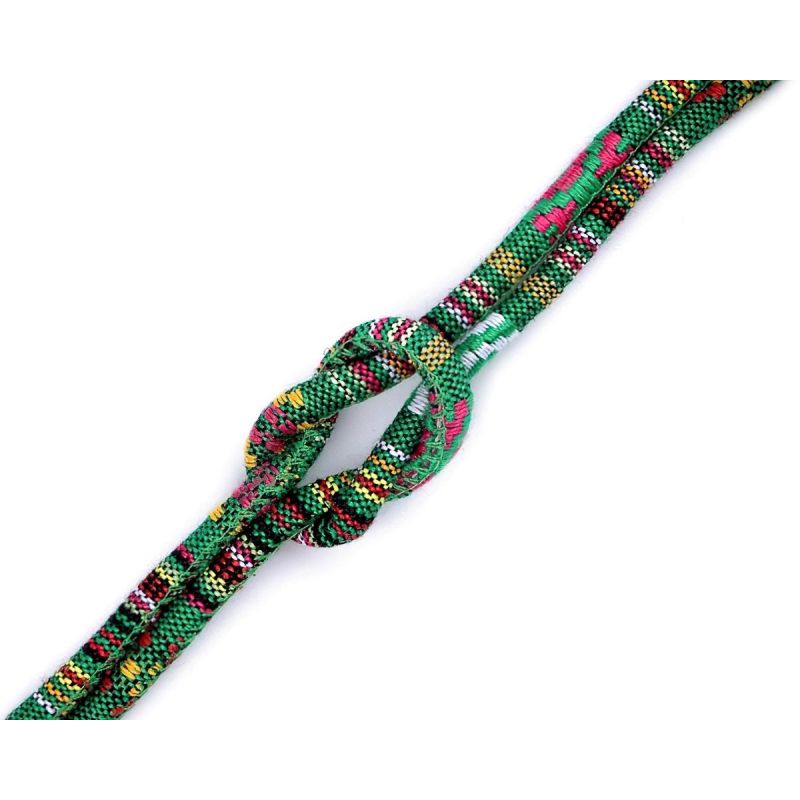 Šňůrka kulatá s výplní 310199/3, indiánský motiv, zelená, průměr 6mm (šňůra na metry)